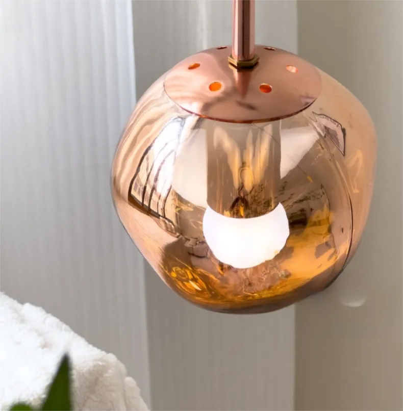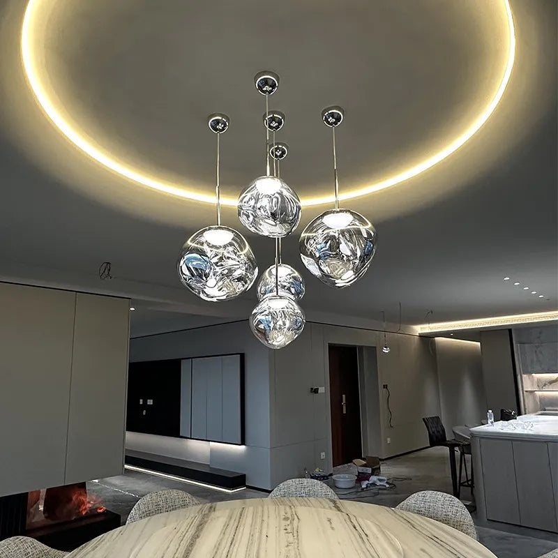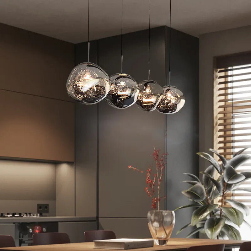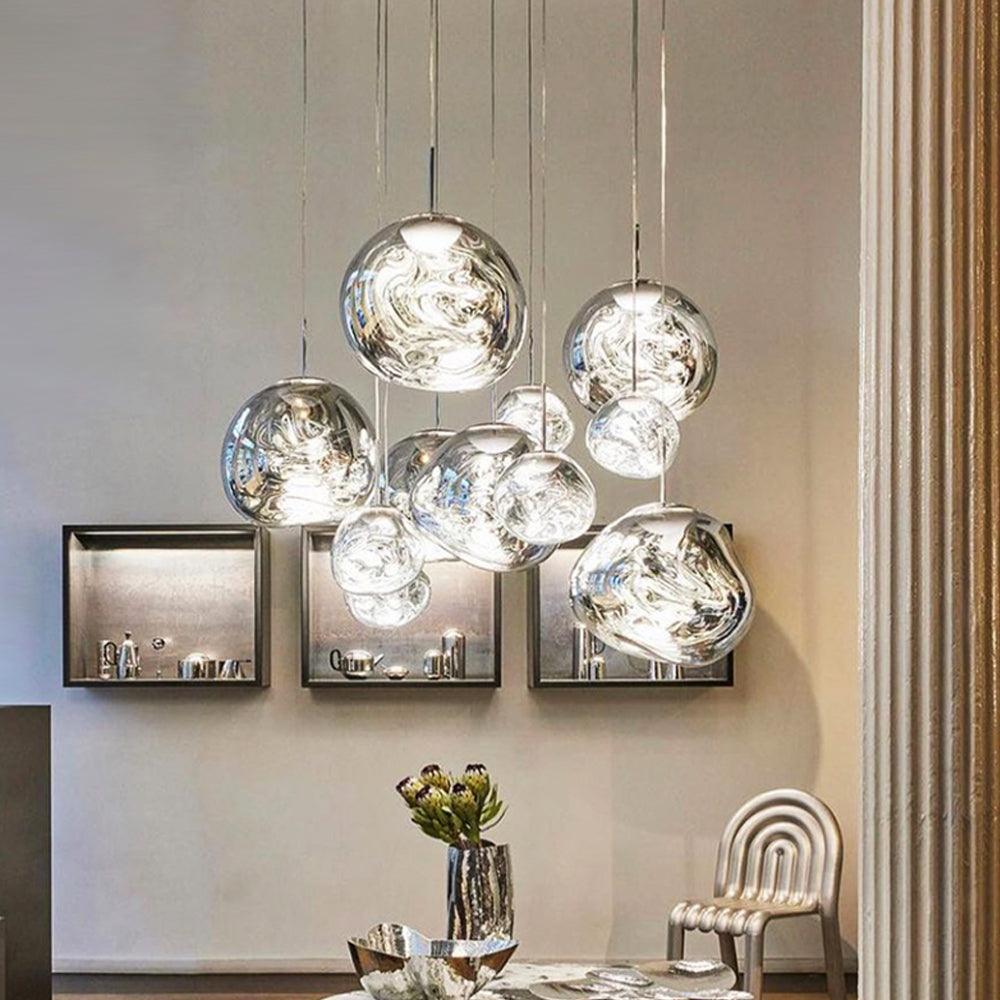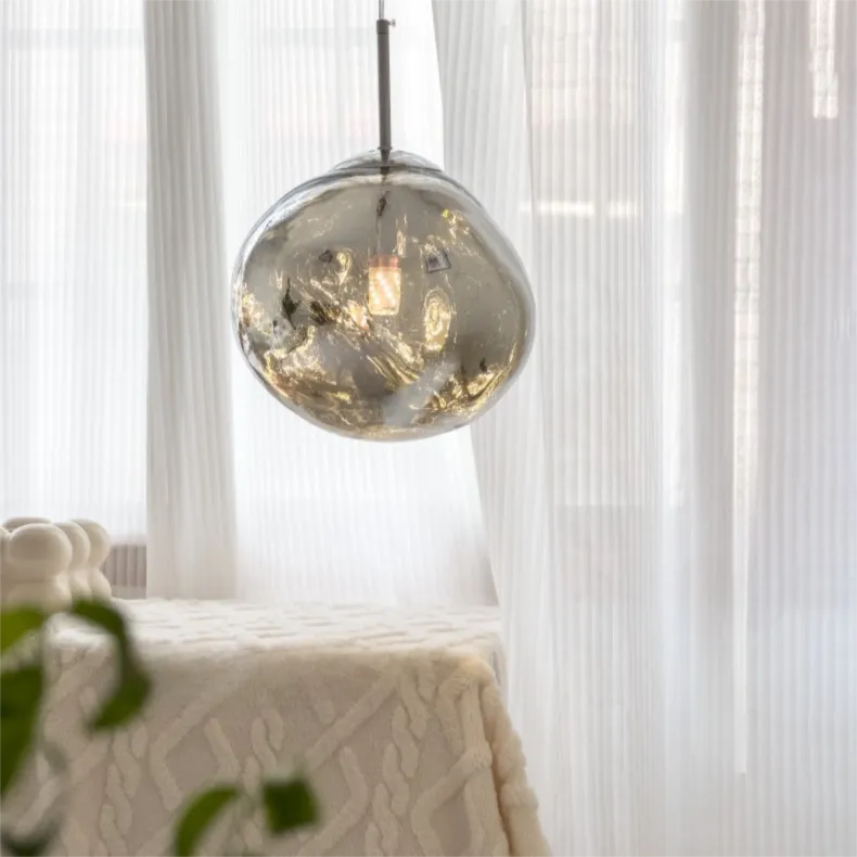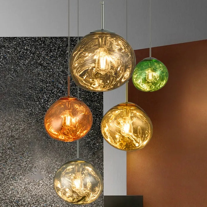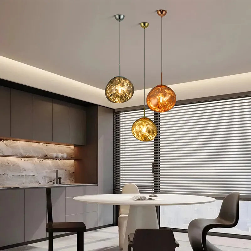 Transform your dining room with the Modern Lava Glass Pendant Light. Available in seven stunning colors, its high-transparency glass shade creates a calming atmosphere. The electroplated metal body is sleek, smooth, and resistant to rust and high temperatures. The unique lava-inspired design adds a creative touch to any space.