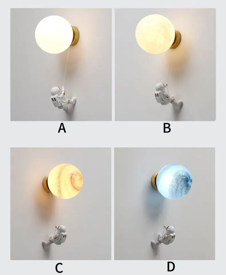 Whimsical astronaut wall light for kids’ bedrooms, featuring a moon base design in smooth resin. Eco-friendly PLA lampshade gives a soft glow and premium feel. G9 bulb socket makes replacement easy and safe. A fun, imaginative touch for bedtime lighting.