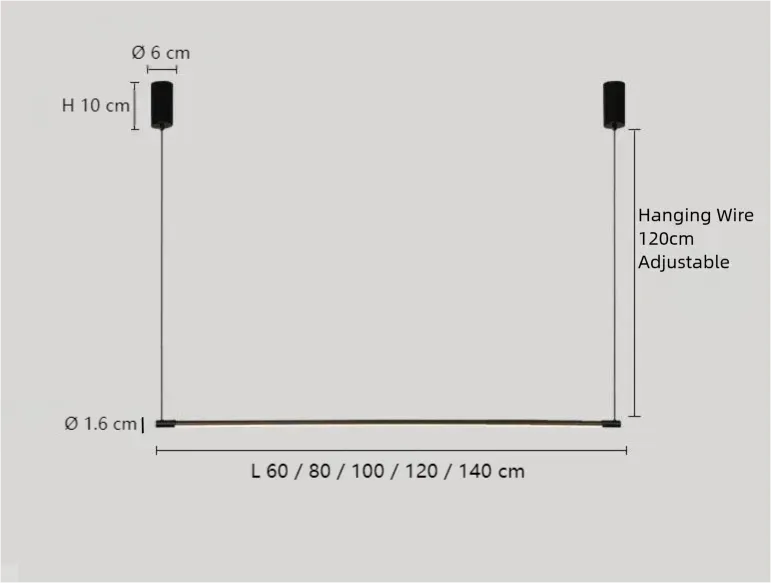 This Linear Black Pendant Light features a minimalist design, perfect for enhancing the ambiance in your dining room or over a kitchen island. Made from durable metal with a sleek black finish, it is dimmable and adjustable to suit your lighting needs. The LED light is blue-light-free and flicker-free, protecting your eyes, while the corrosion-resistant aluminum body ensures long-lasting quality. Available in sizes from 60 to 140 cm, it is CE certified for safety.