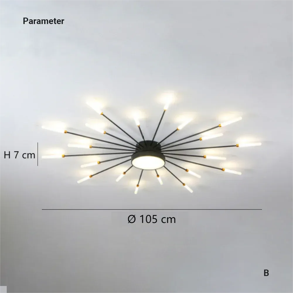 This Modern LED Firework Design Ceiling Light for Living Room brings an exquisite touch to your home. Crafted from high-quality acrylic and iron metal, its unique firework-inspired design enhances the dimensional and artistic appeal of your space. The 360° surrounding illumination ensures a wide and clear lighting area, while reducing flicker and glare for eye health protection. Available in various styles to suit your preferences.