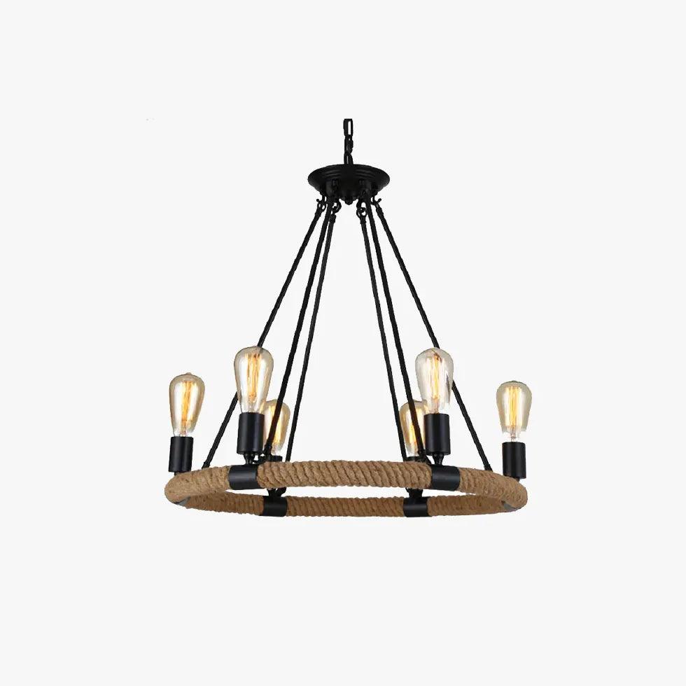Transform your living room with this vintage wrought iron rope chandelier, a perfect blend of vintage charm and durability. Crafted from a sturdy iron frame and hand-wrapped natural rope, it delivers both strength and texture. Multiple bulbs create bright, even illumination, ideal for open spaces.