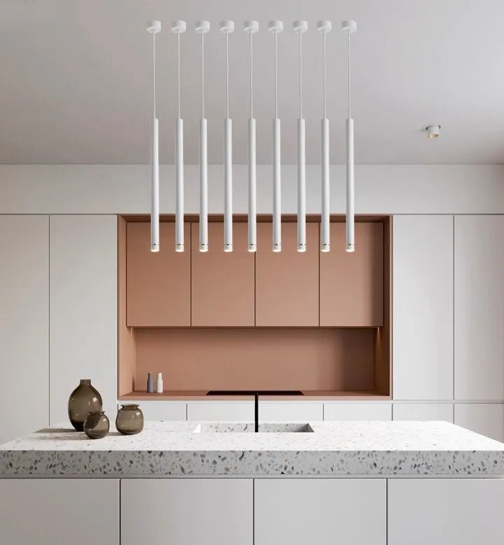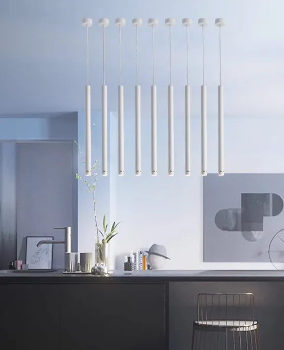 Add a touch of modern elegance to your kitchen with the LED long tube pendant light.Crafted from durable aluminum, its black spray-painted finish offers a sleek, rust-resistant surface. The high-performance LED spotlight ensures bright and efficient lighting, while its minimalist design perfectly complements any contemporary kitchen decor