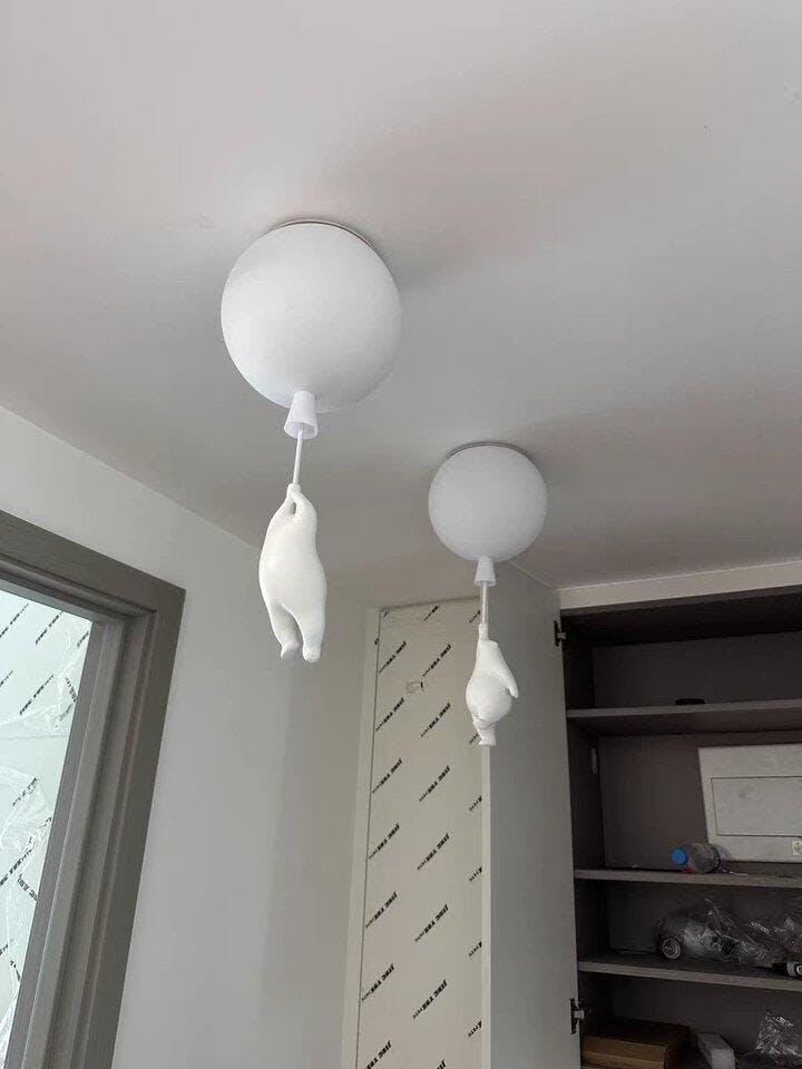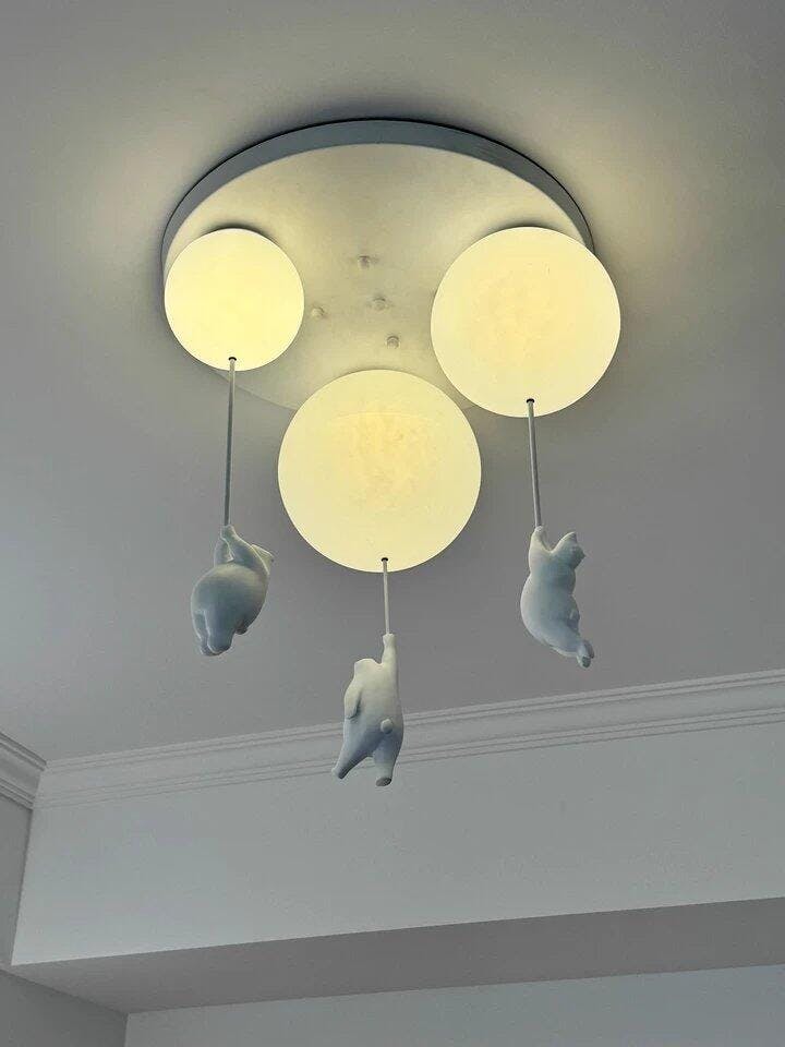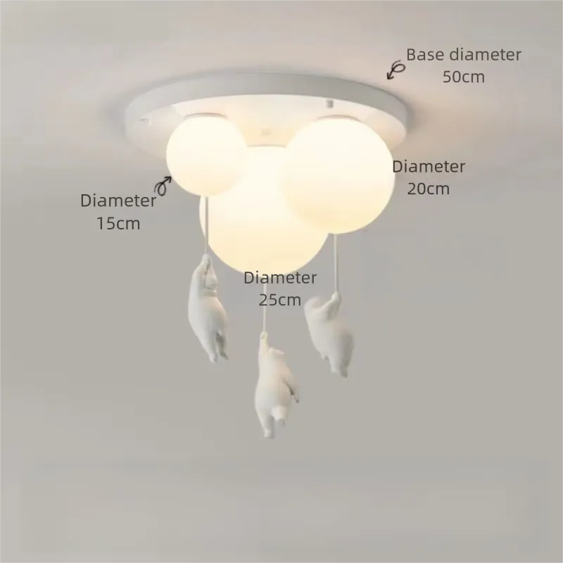 This Creative Bear Balloon Ceiling Light is designed with an adorable bear and balloon elements, bringing a playful and heartwarming touch to your child's room. The soft lighting provides a comfortable environment, enhancing the room's ambiance and creating a dreamy, fairytale-like atmosphere. Made from high-quality resin, it is durable and ensures long-lasting use. Available in various sizes to fit different room layouts, adding warmth and joy to your child's growing space.