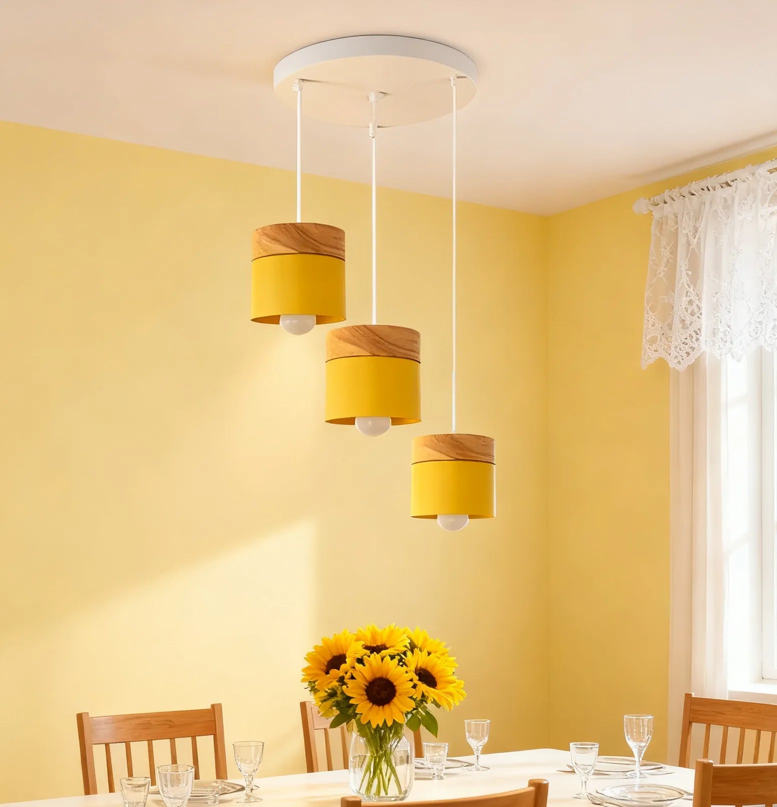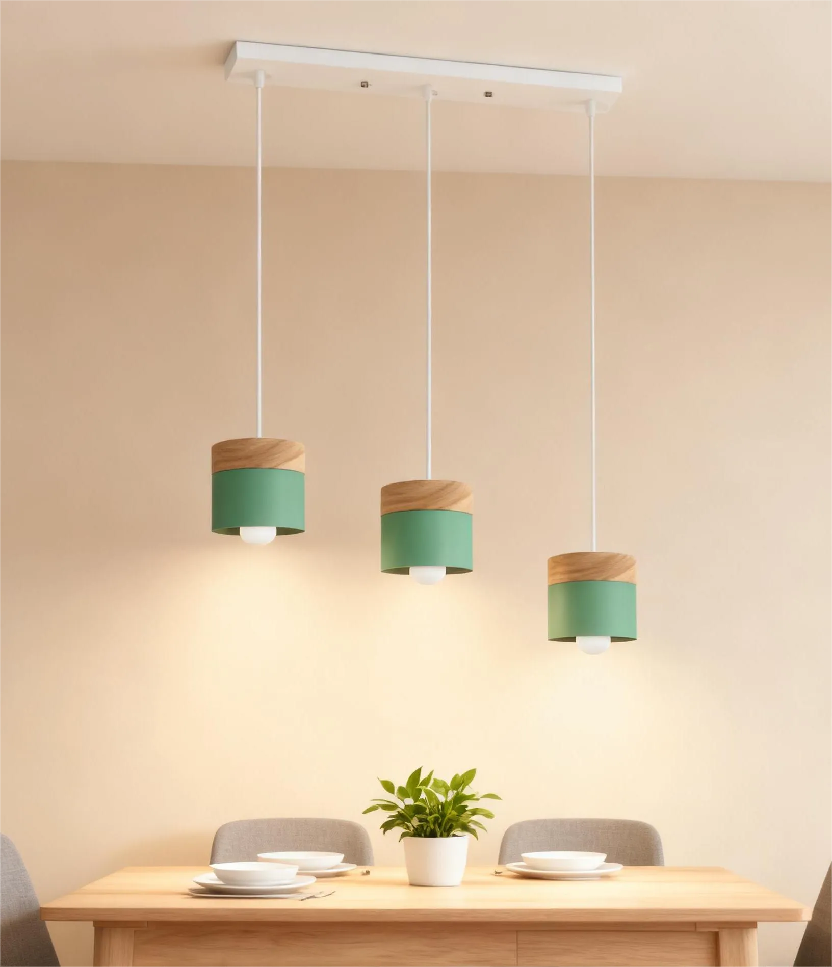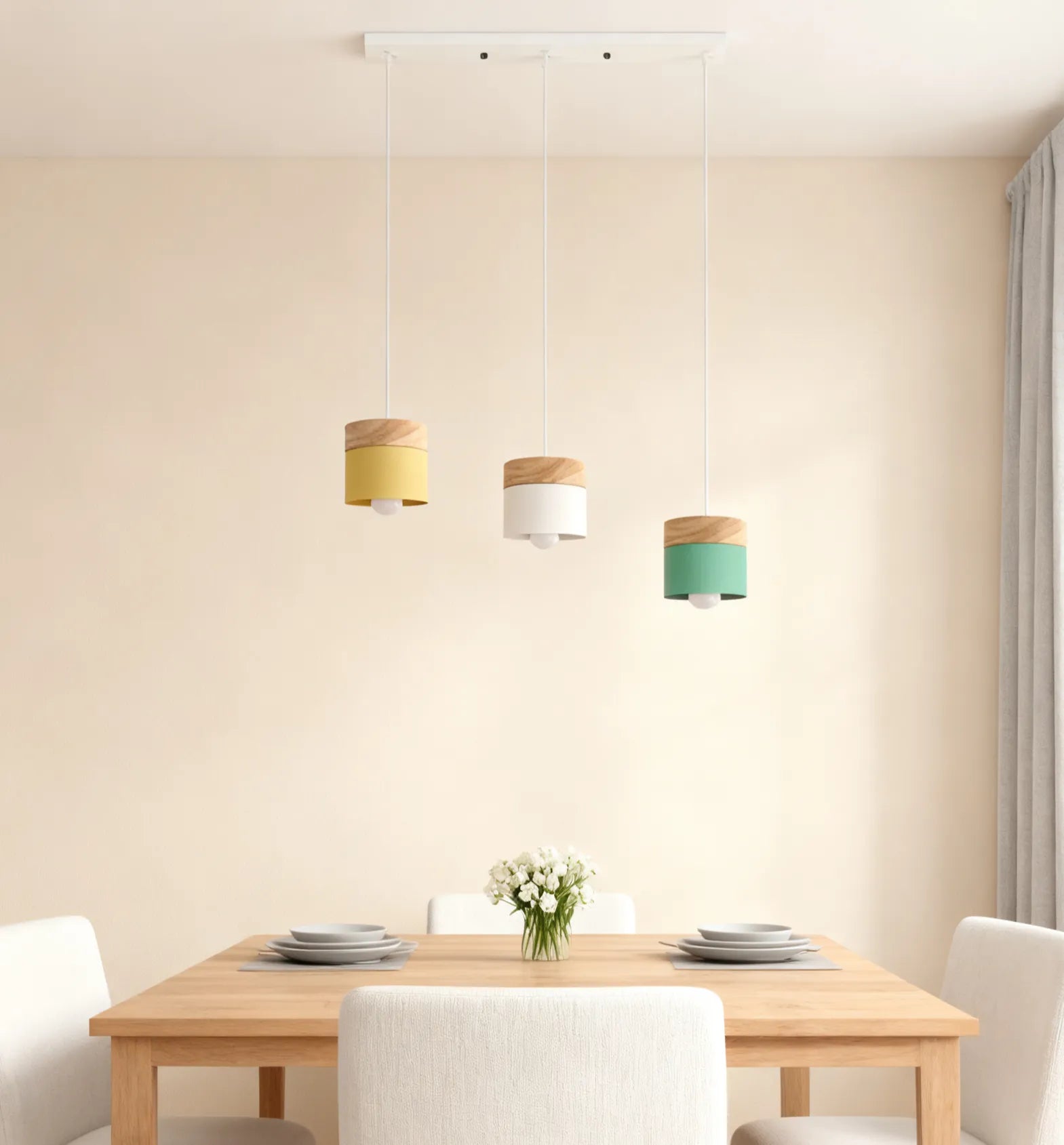 Available in a range of soft macaron colors, this pendant light adds a vibrant yet cozy ambiance to dining room. Crafted from high-quality rubberwood, known for its natural grain and durability, it offers both aesthetic appeal and long-lasting performance. Ideal for dining areas, its unique design makes it a perfect blend of functionality and style, creating a warm and inviting atmosphere in dining room.