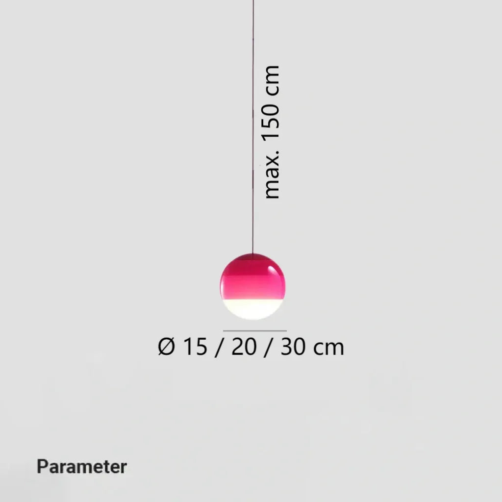 Crafted in a clean Nordic style, this round pendant light is made from traditionally blown glass for a refined finish. Available in grey, blue, green, orange, pink or black, and in 15cm, 20cm or 30cm diameters, it suits dining rooms and kitchen islands. Integrated LED lighting is dimmable with three adjustable colour temperatures to set the right mood. CE certified for everyday use.