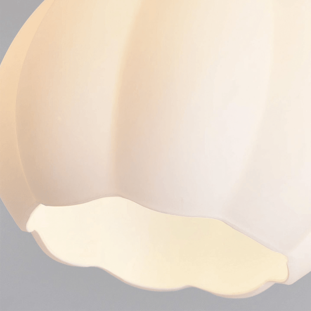 The Cream Pumpkin ceiling lamp is made of a combination of glass and metal materials. The pumpkin-shaped lampshade is made of glass and has a delicate shape, creating a charming visual effect. Metal parts such as the base and frame provide structural support and contribute to the overall aesthetics of the luminaire. The harmonious fusion of glass and metal elements adds a touch of elegance and sophistication to the design.