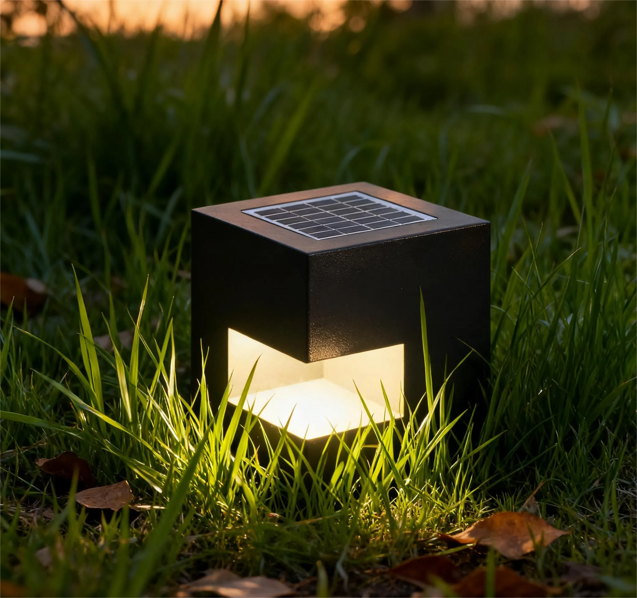This Solar Waterproof Outdoor Cube Floor Lamp is perfect for gardens, combining style and practicality. Its cube design, with an open side, emits a soft glow, creating a warm and inviting atmosphere. Made from durable stainless steel, it is ideal for year-round outdoor use. The energy-efficient LED light is powered by solar energy, eliminating the need for wires and offering an eco-friendly, efficient solution.
