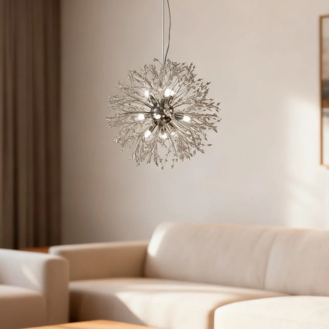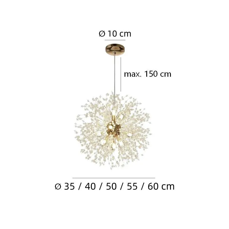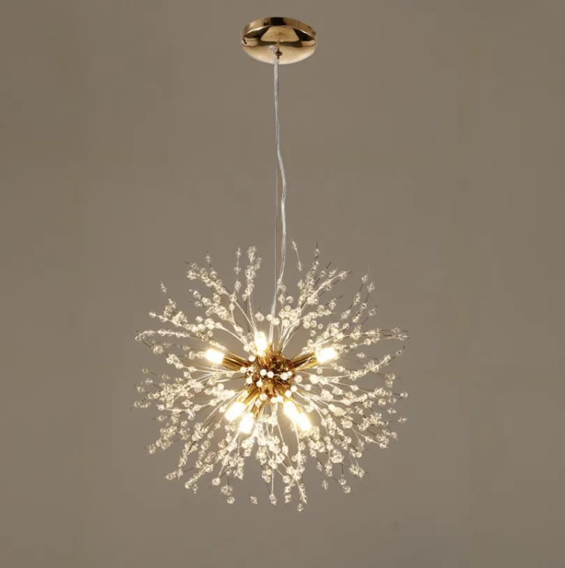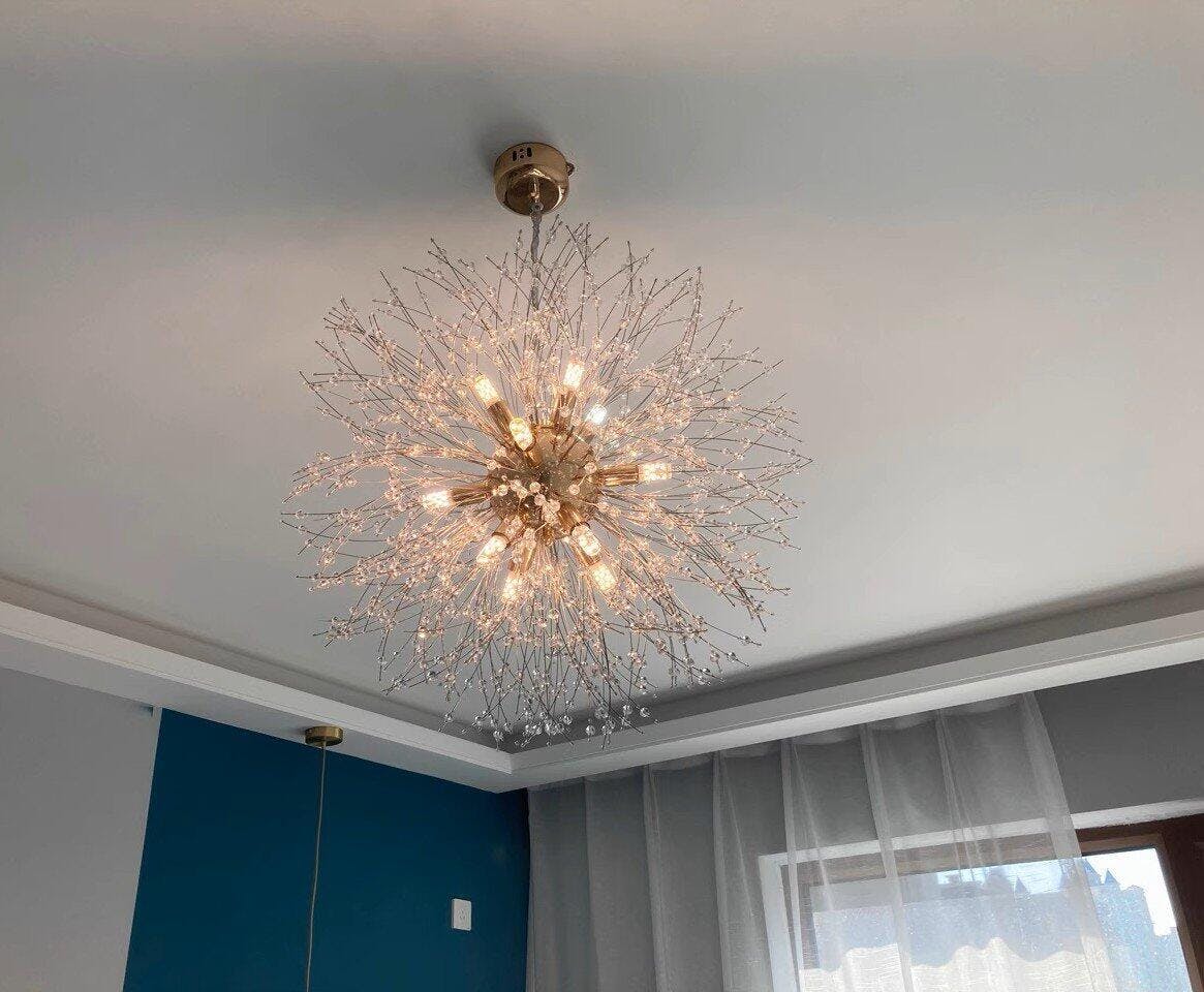 Designed to elevate modern interiors, the sputnik pendant light offers a striking balance of style and functionality. Featuring refined crystal elements, this modern crystal pendant lighting enhances light diffusion while adding visual elegance. The integrated LED light source delivers blue-light-free illumination that is energy-efficient, dimmable, and long-lasting. Ideal as a hanging light for dining room spaces, it creates a warm, inviting ambience and is equally suitable for living rooms. Fully CE certified for safety and reliability.