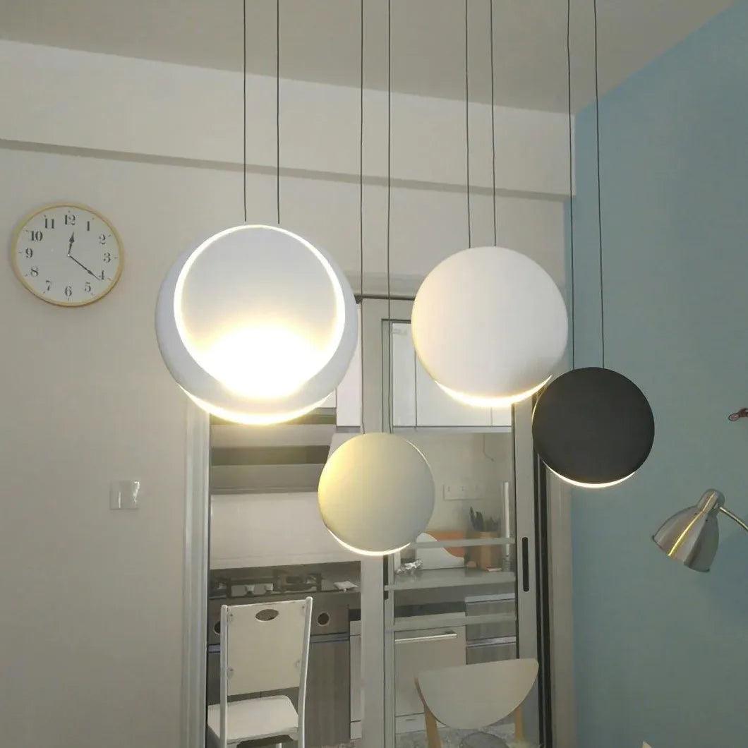 This modern LED circular pendant light blends minimalist Scandinavian design with durable metal and resin materials. Available in various sizes, it's perfect for dining rooms and bedrooms. Featuring corrosion-resistant properties, it ensures lasting performance and style in any space.