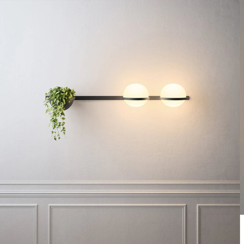This modern black wall light with green plants offers a sleek and stylish design for your bedroom or hallway. Crafted from durable metal and plastic, it is energy-efficient and resistant to aging. Available in various specifications, this functional light adds a contemporary touch to your space.