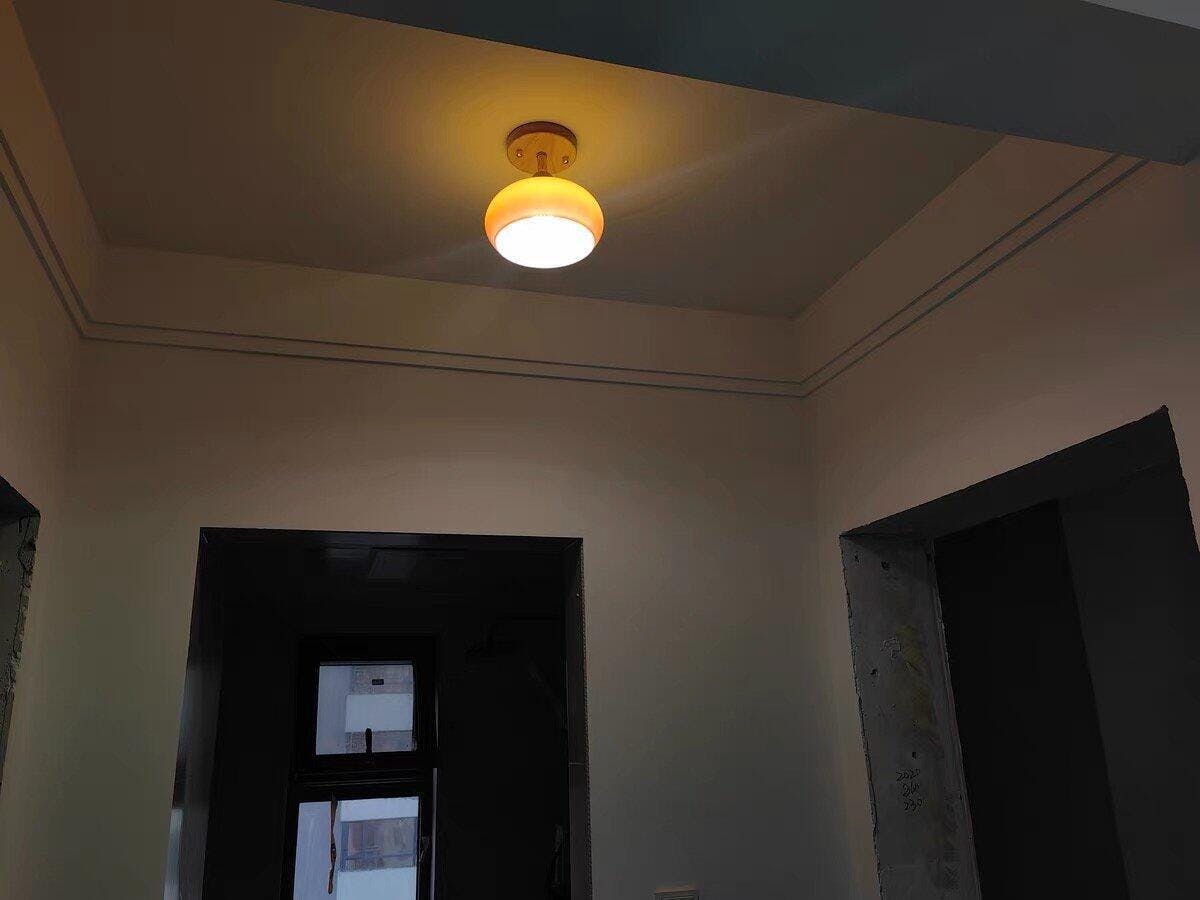 Enhance your hallway with cream-style glass ceiling lights featuring tri-colour switch control. The flush design pairs rich walnut wood and brass for a refined touch. Warm, soft glow adds charm to corridors, entryways, and passages with stylish functionality.