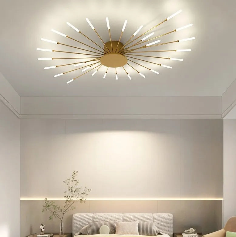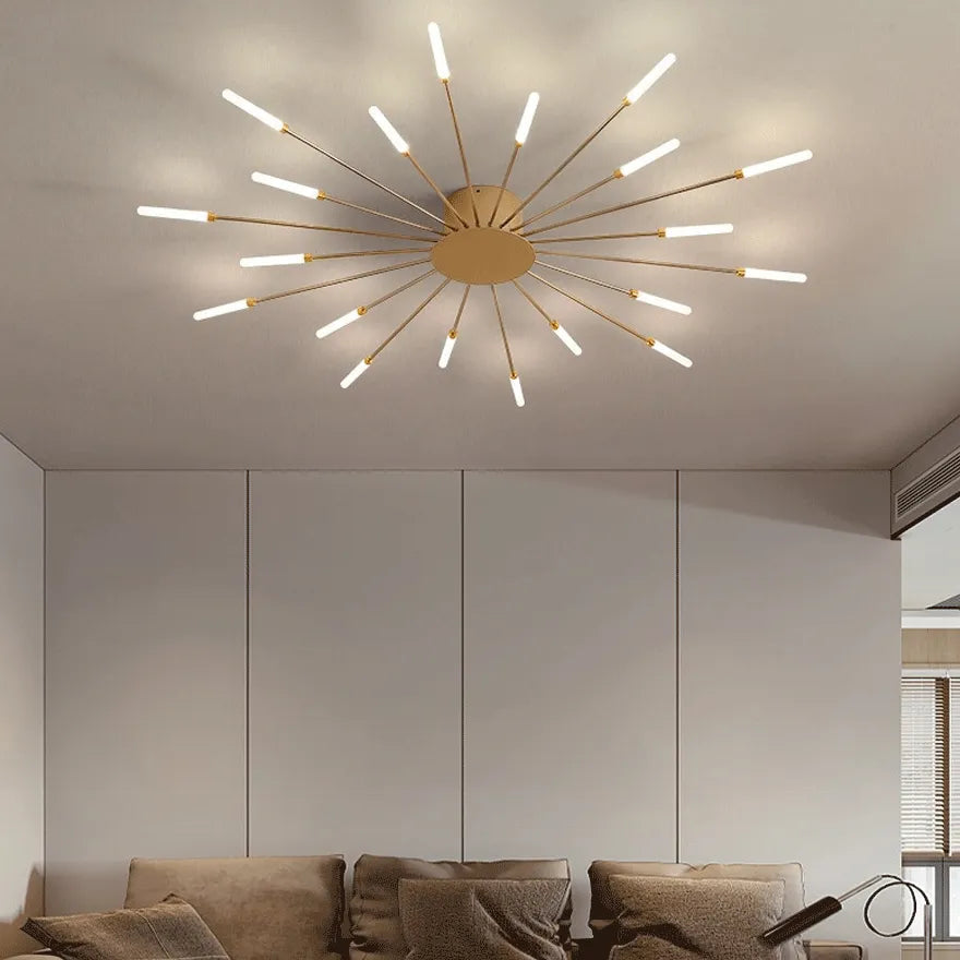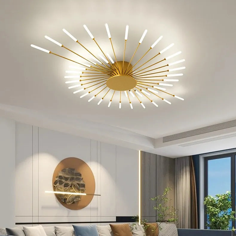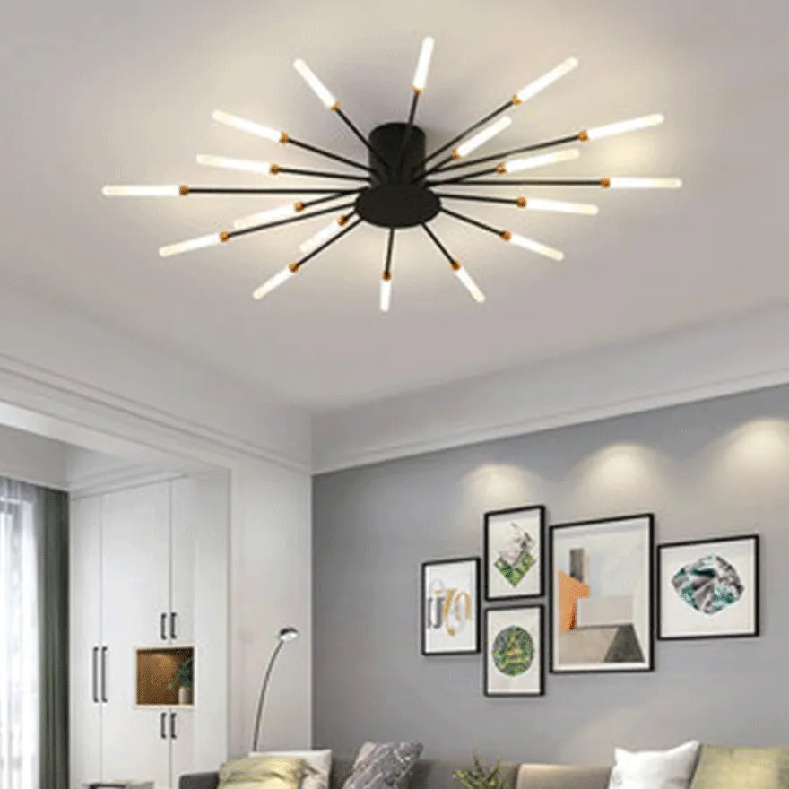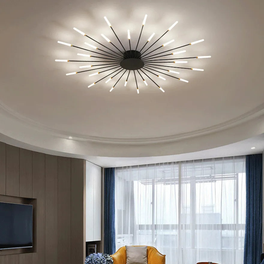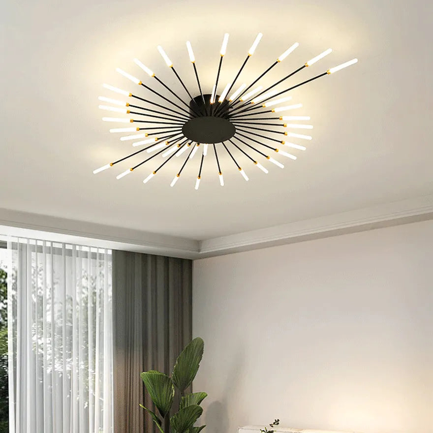 Bring a modern touch to your living room with this modern firework flush mount ceiling light. Available in black or gold, the firework design uses high-transparency acrylic for soft, no-flicker, anti-blue lighting. Durable metal body with hand-painted finish ensures lasting elegance.