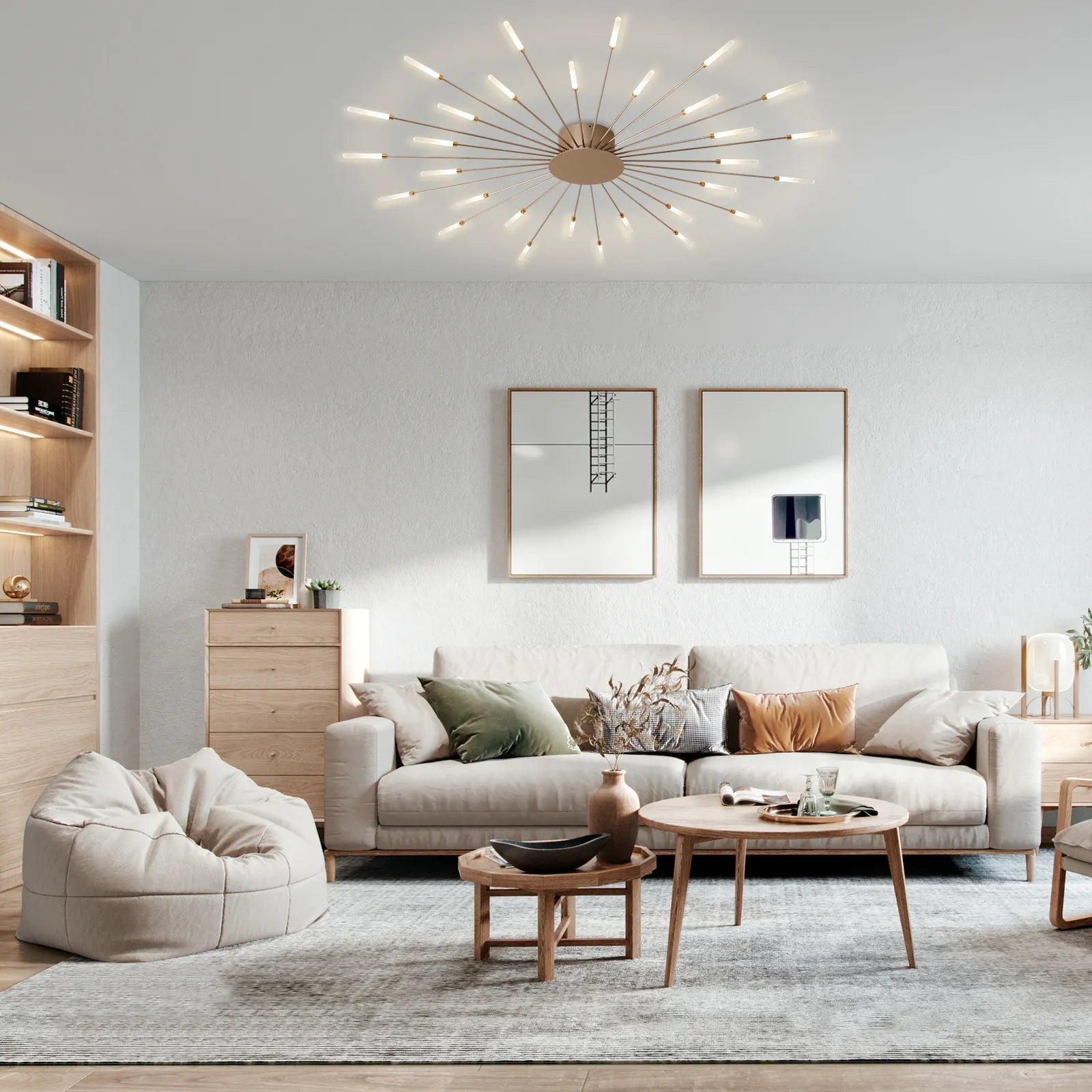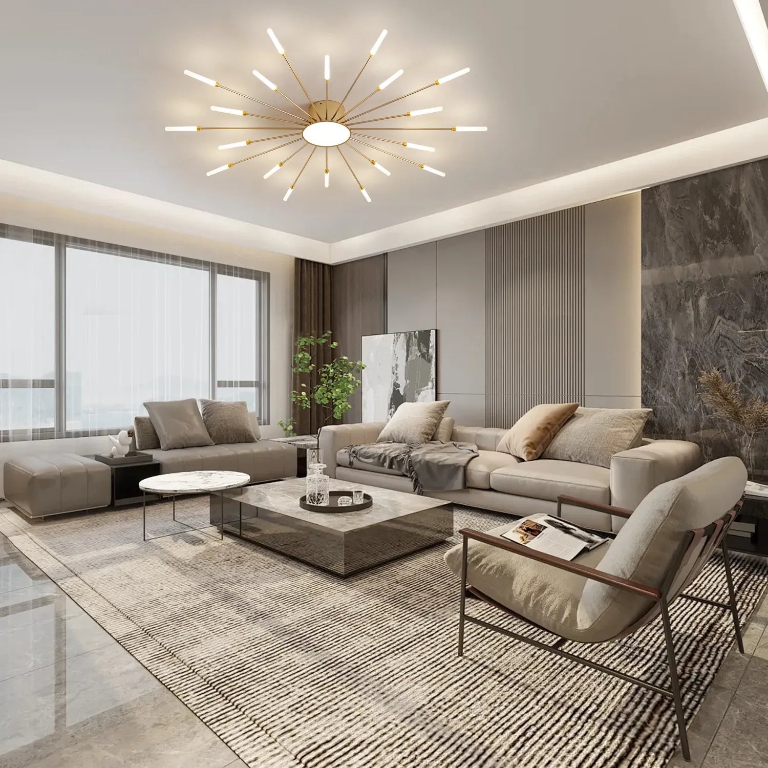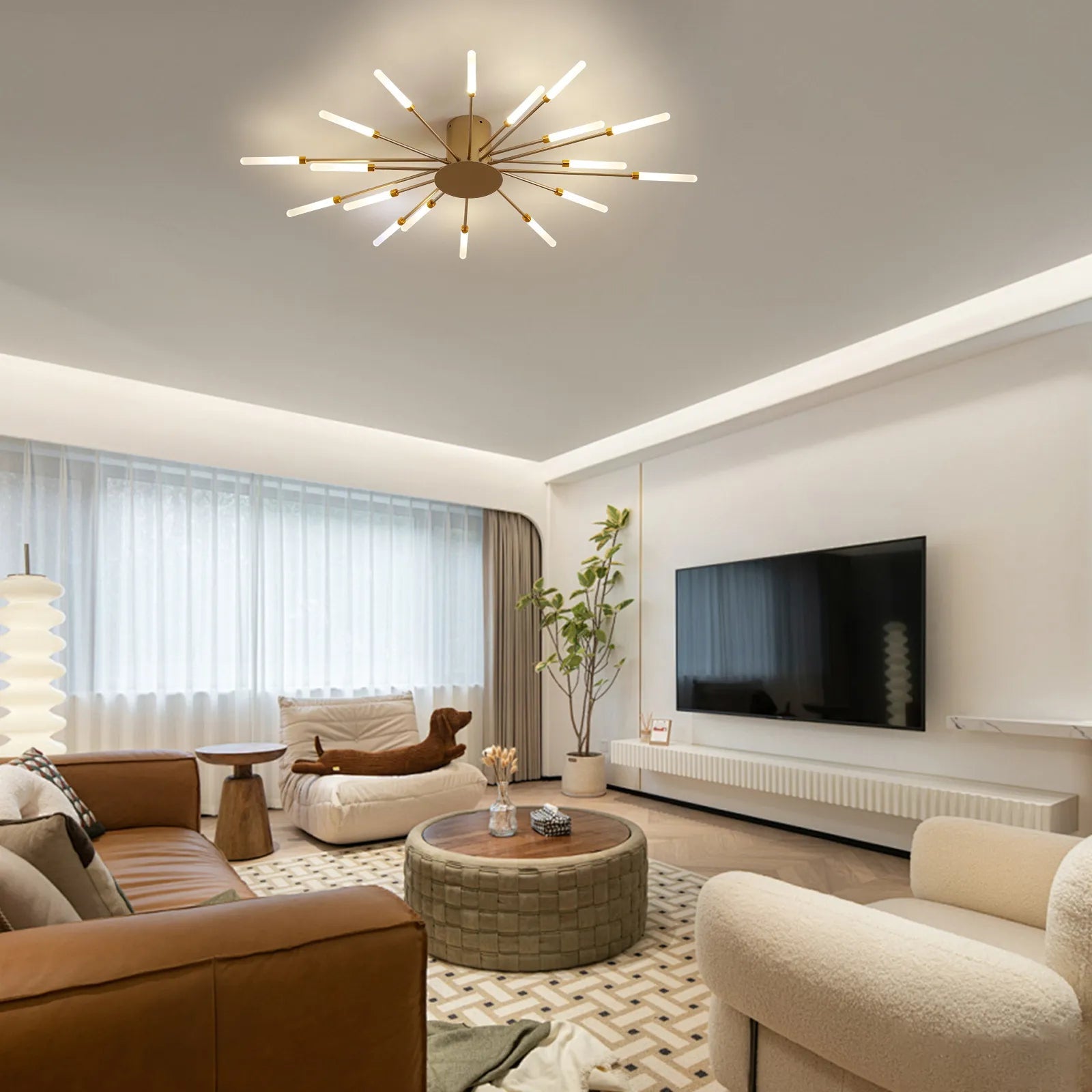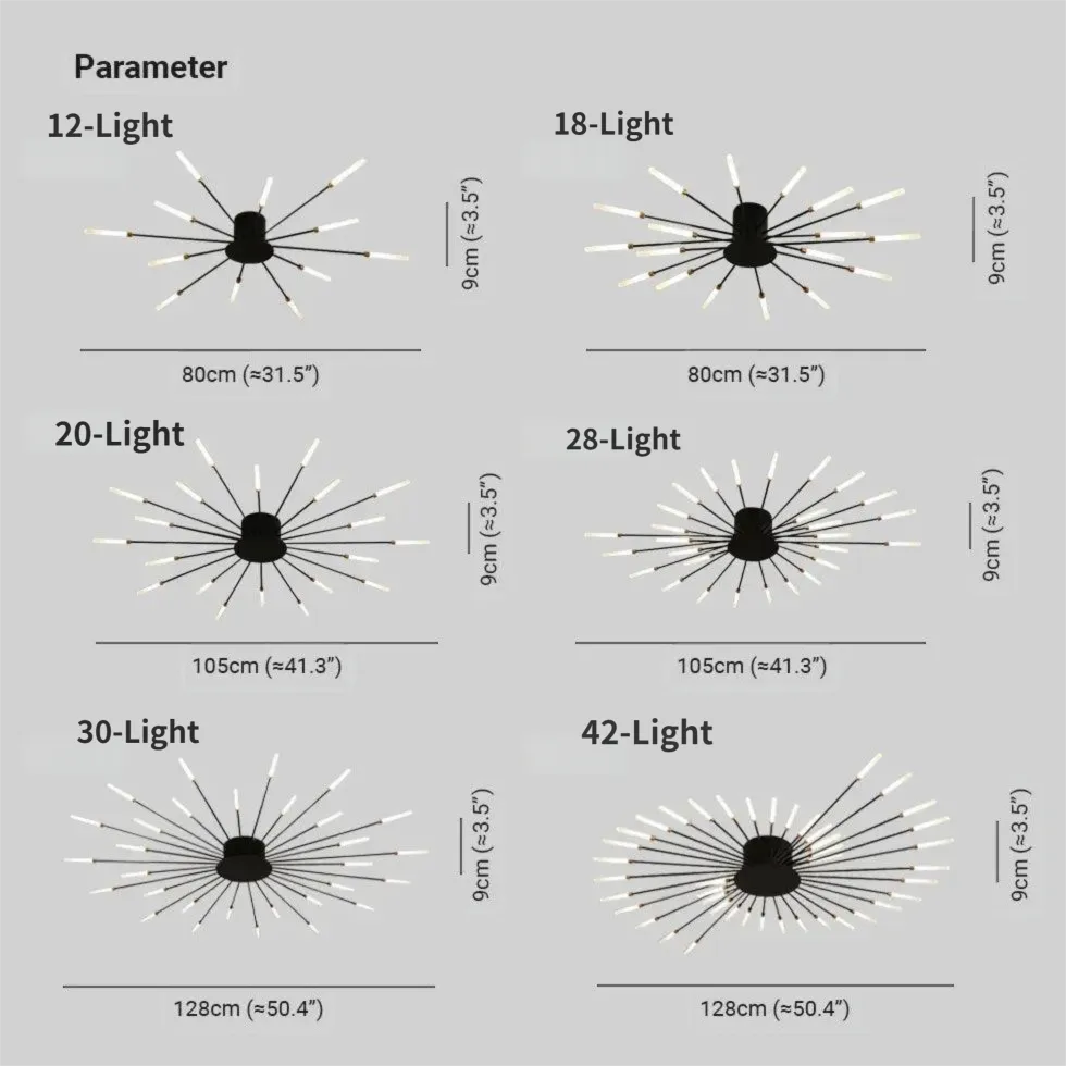 Bring a modern touch to your living room with this modern firework flush mount ceiling light. Available in black or gold, the firework design uses high-transparency acrylic for soft, no-flicker, anti-blue lighting. Durable metal body with hand-painted finish ensures lasting elegance.