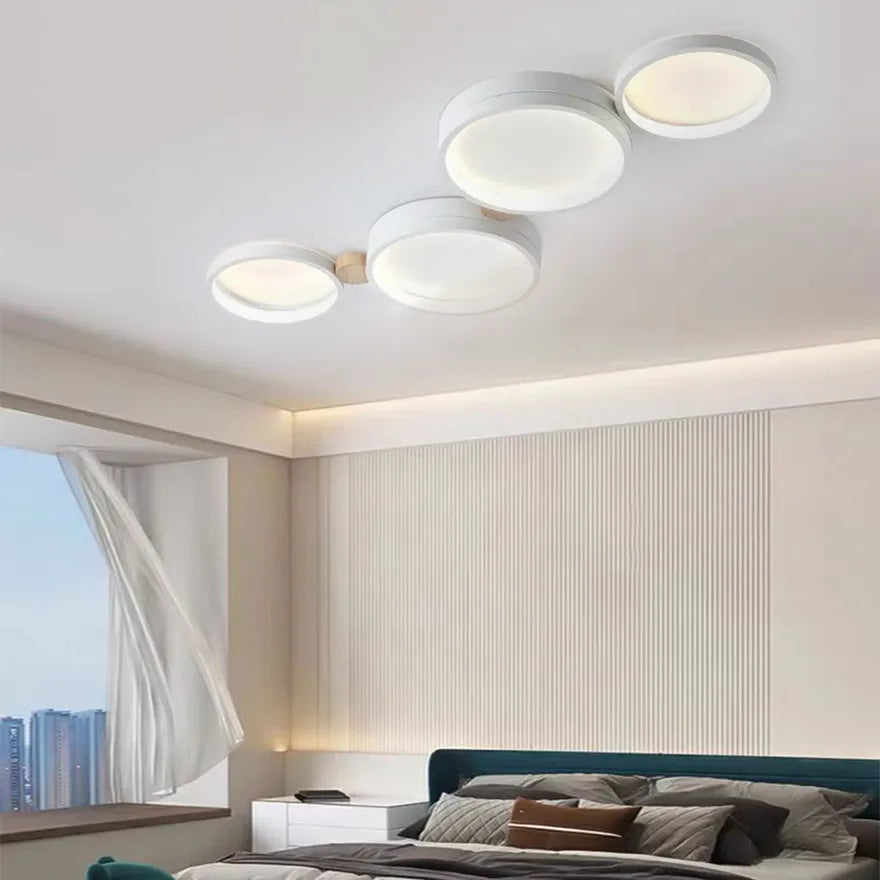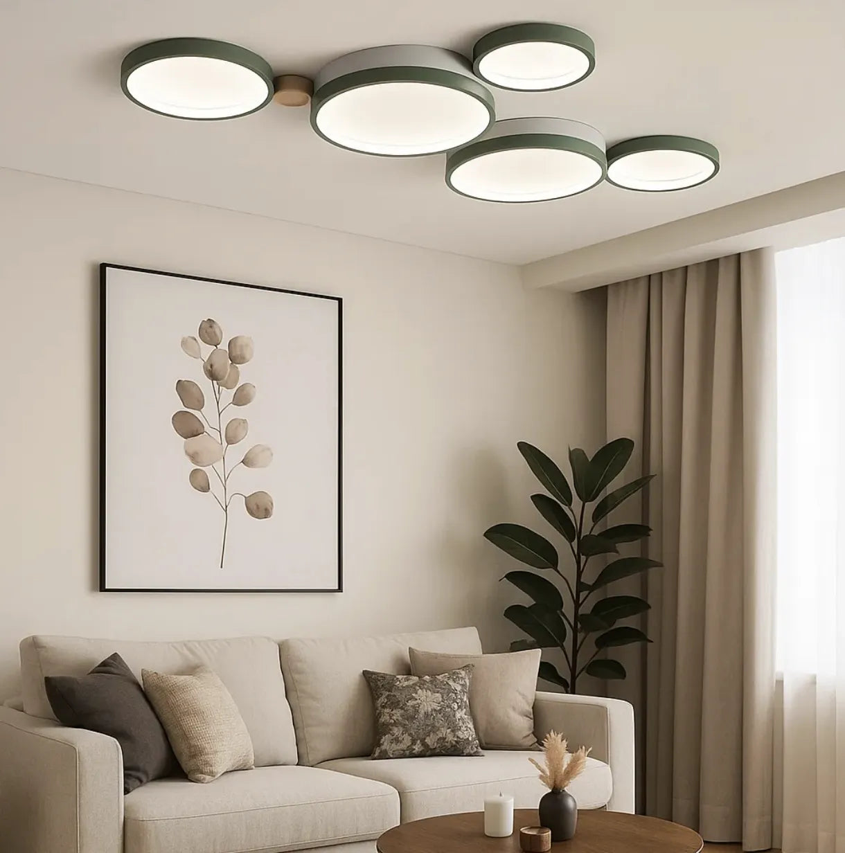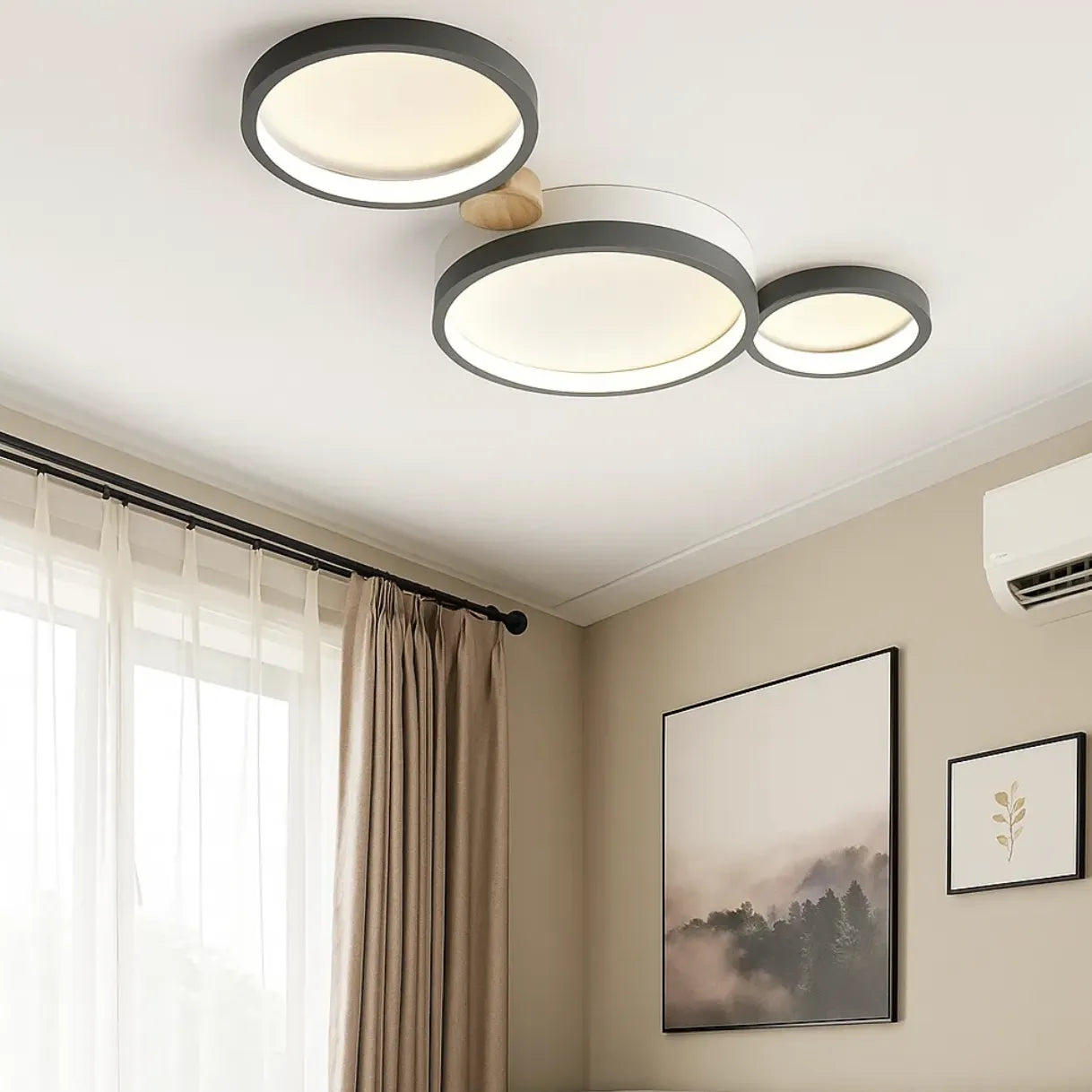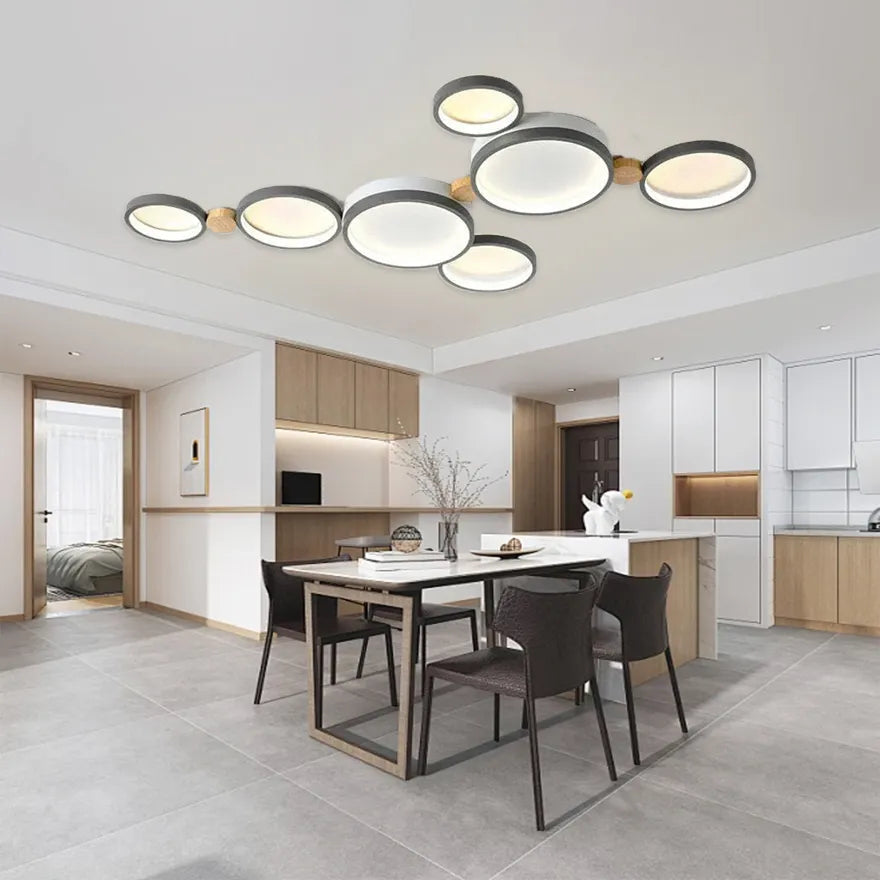 This Nordic LED Ceiling Light Fixture adds a modern touch to your living room with its multi-ring design. Crafted from high-quality iron and finished with a smooth matte surface, it features natural rubber wood accents that enhance its natural texture. The soft light protects the eyes, reduces flicker, and minimizes blue light hazards, creating a soothing relax environment.