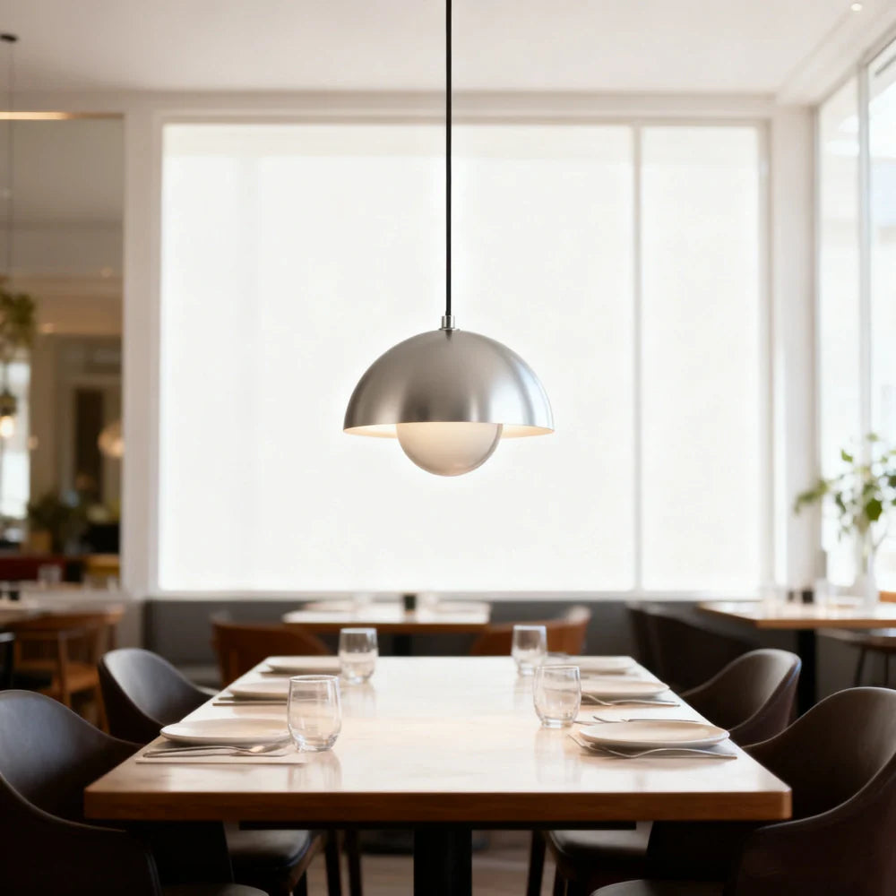 This modern metal pendant light offers a sleek and durable lighting solution for your dining room or kitchen island. Featuring energy-efficient LED technology, it is dimmable and provides long-lasting performance with anti-glare features for comfortable illumination. Crafted from high-quality metal with advanced multi-layer techniques, this pendant light is built to last and resist deformation. Available in a variety of colours, CE certified for safety and reliability.