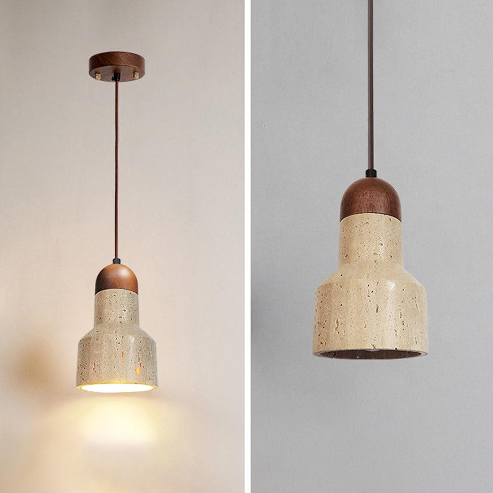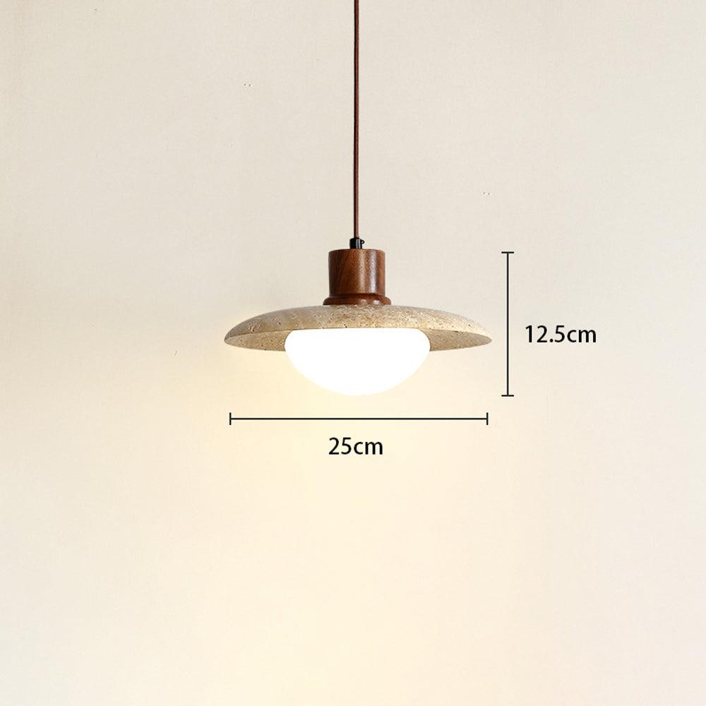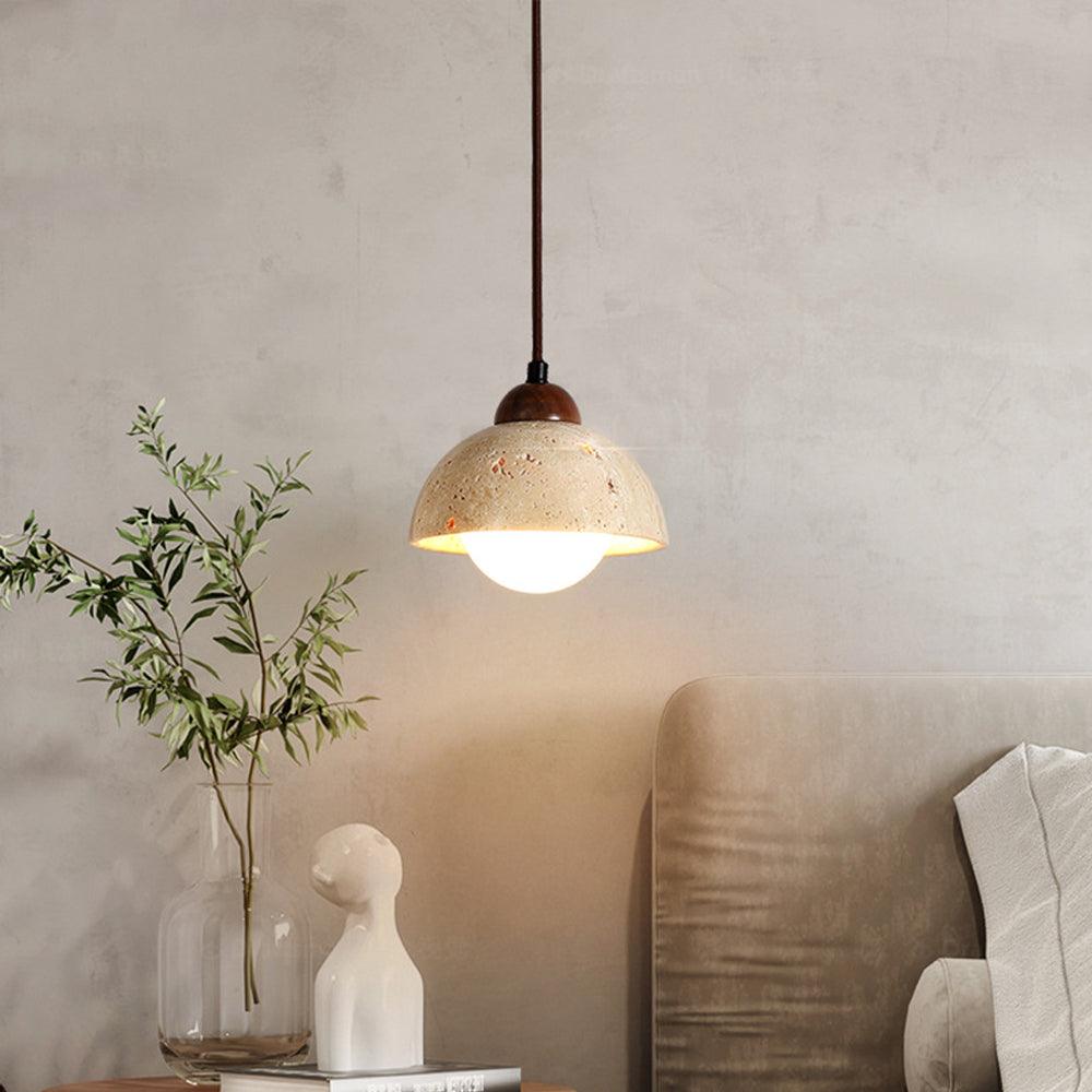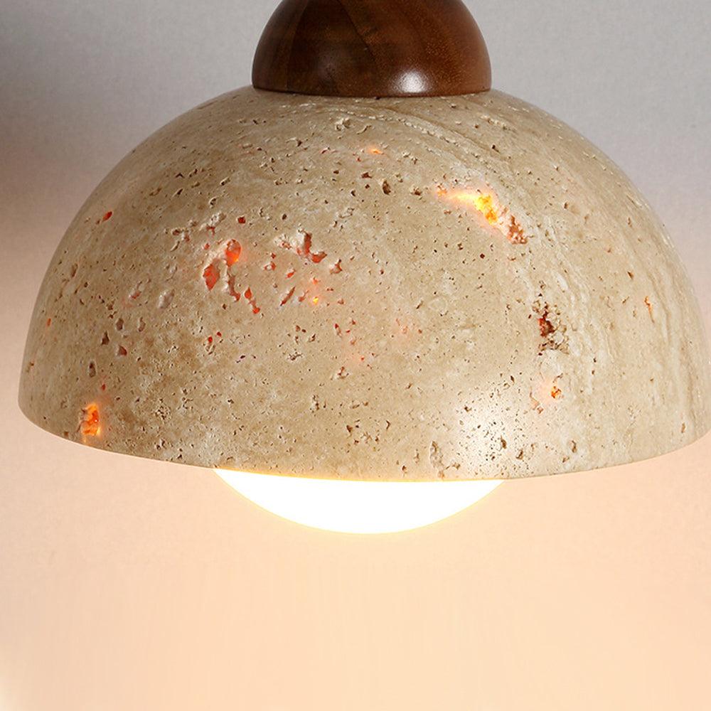The old paint and resin lampshade used to create the Travertine Stone Pendant Light has a distinct texture and a feeling of unique design.