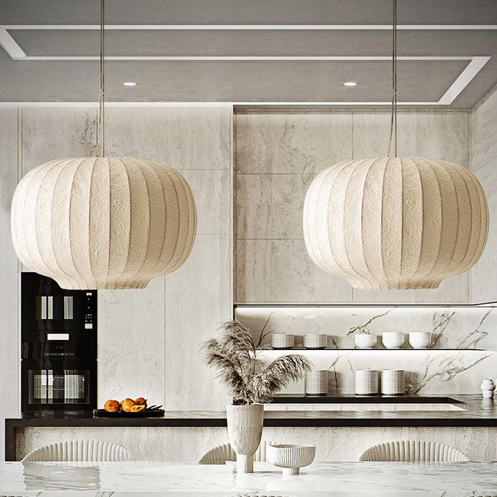 Combining practicality and creativity, the pendant light fixture is intended to be a focal point in dining areas and restaurants. It has a strong metal frame that holds up the silk shade, guaranteeing longevity while keeping a sophisticated appearance. The chandelier is adaptable to varied ceiling heights and space designs because it can be raised or lowered.