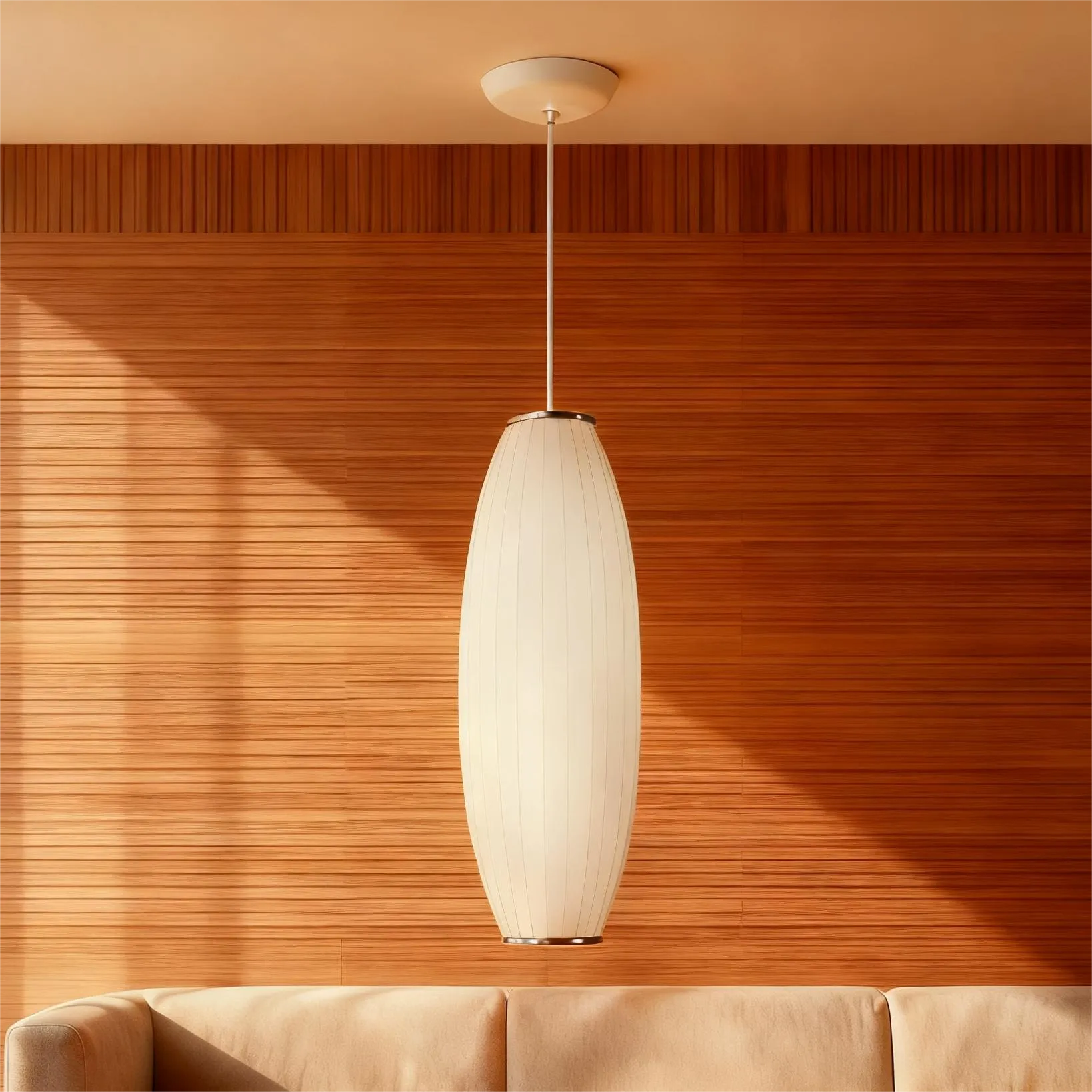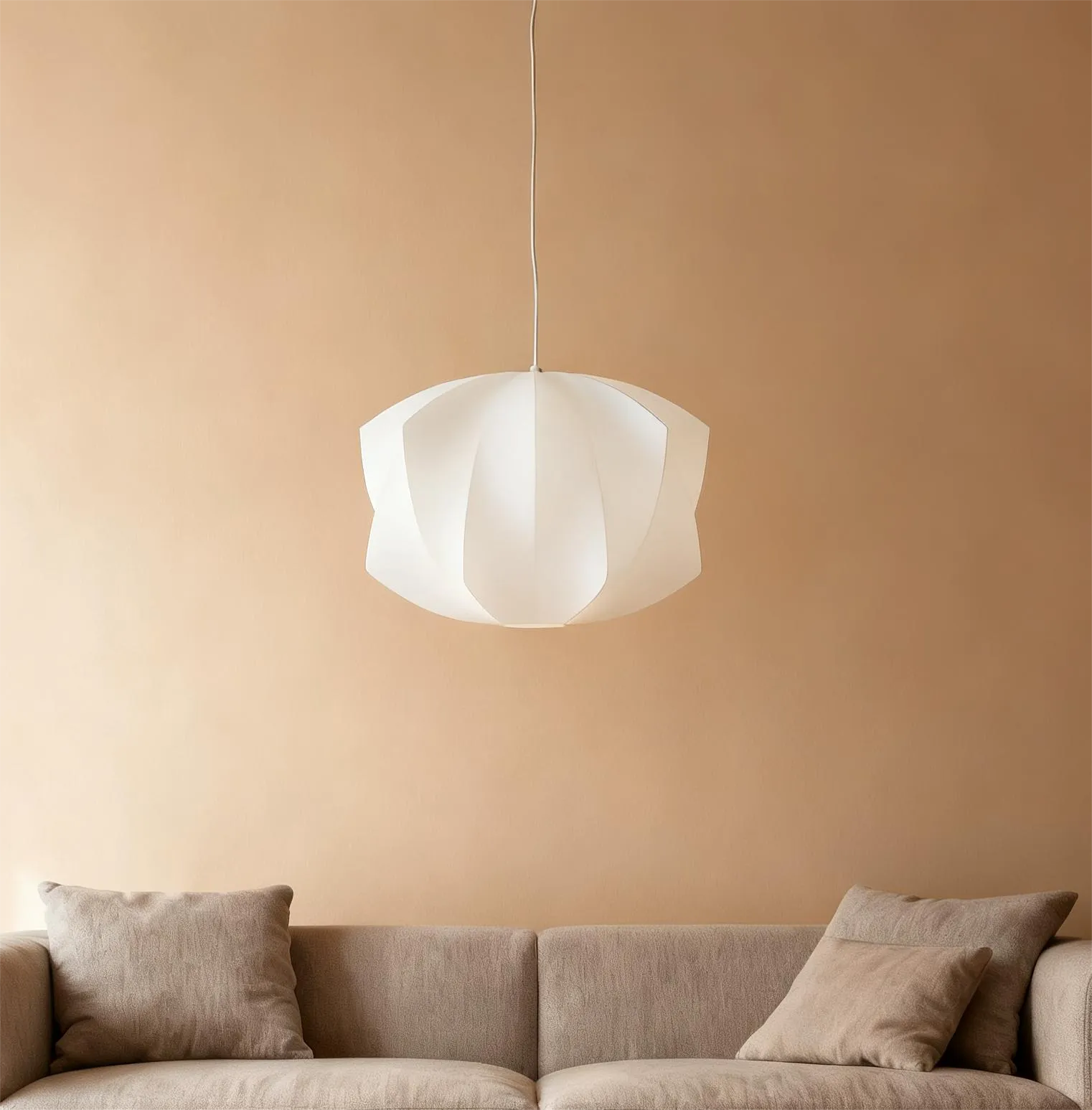 Its simple design and premium silk fabric material create a calming ambiance while adding a refined texture to your living room. The pendant light provides soft, even illumination, enhancing the comfort of your living area. We offer different sizes and styles, making it suitable for living room while adding a touch of simple elegance.