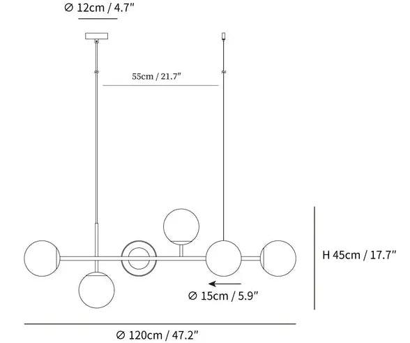 Nordic Long Glass Globe Pendant Light with Bubble Glass