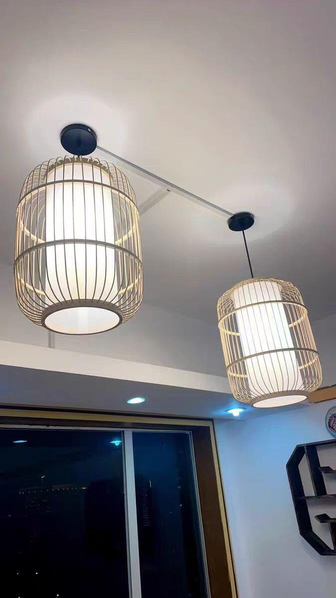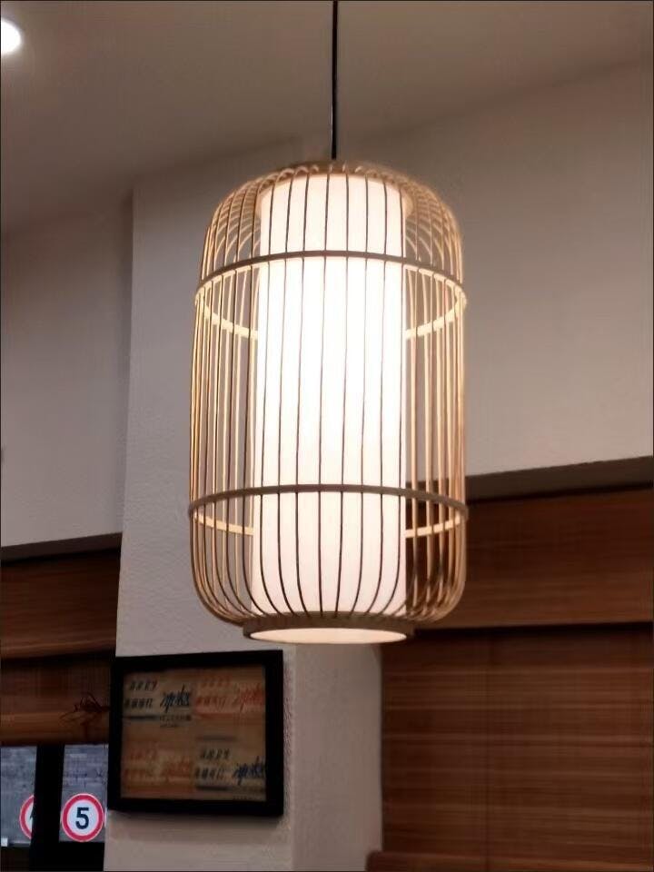 Enhance your dining space with this Chinese lantern pendant light, crafted from natural bamboo. Its elegant design delivers soft, energy-efficient lighting, adding warmth and cultural charm to any dining setting.