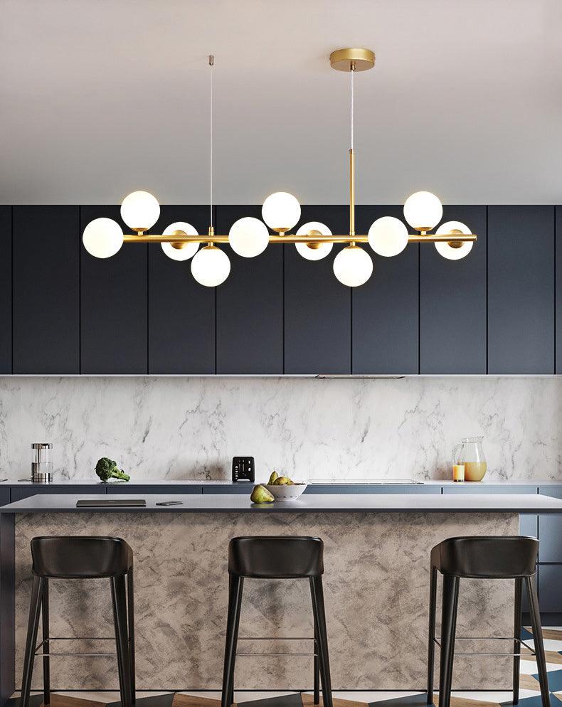 The Modern Globe Pendant Light combines sleek metal and high-quality glass and crystal, creating a stylish focal point for your kitchen island or dining area. Its energy-efficient, flicker-free design provides a warm, inviting atmosphere, making it ideal for modern interiors.