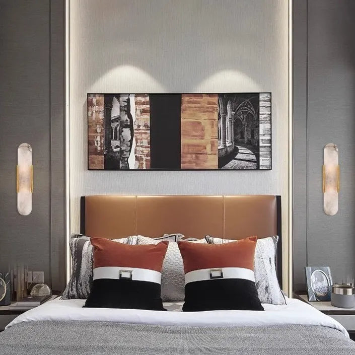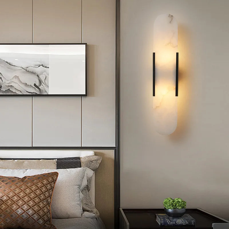 Crafted from solid brass and natural marble, this luxury bedside wall light exudes timeless elegance. The soft, diffused glow highlights the marble’s organic veining, creating a warm and refined ambiance. Built with durable H65 copper for superior corrosion resistance, it combines lasting quality with a sophisticated aesthetic. Available in two exquisite finishes — radiant gold for a touch of warmth and luxury, and sleek black for a modern, understated elegance.
