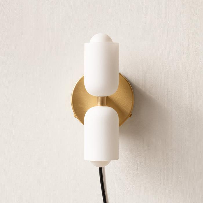 This wall light is both stylish and discreet, providing a gentle upward and downward lighting. The creamy white acrylic shades offer a touch of sophistication to any space, appearing ivory when the light is off and giving off a welcoming warmth when turned on. Ideal for setting a cozy ambiance in your household.