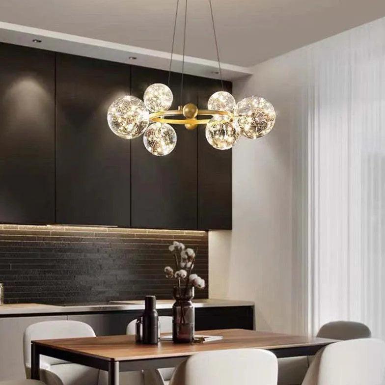 The Glass Globe Pendant Lighting for Modern Bedroom combines sleek, modern design with premium materials. Crafted from durable metal, glass, and crystal, it provides efficient, energy-saving lighting for bedrooms and living rooms. Its flicker-free operation ensures smooth illumination, adding a sophisticated touch to your space.