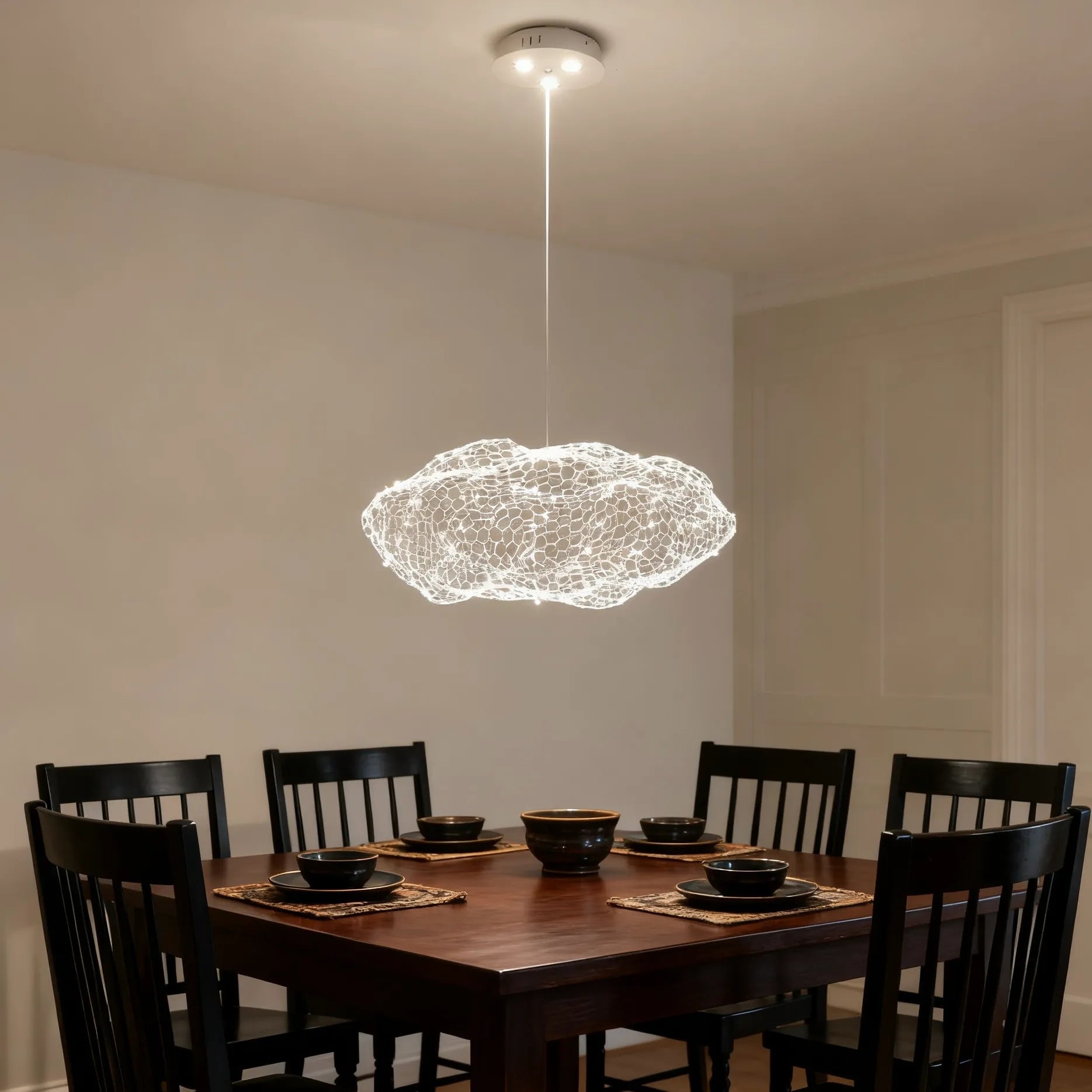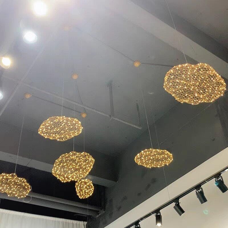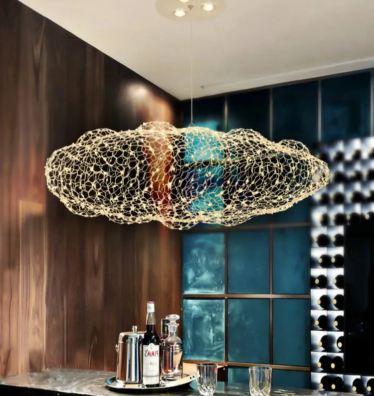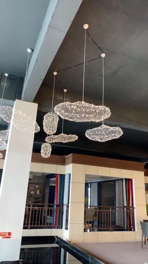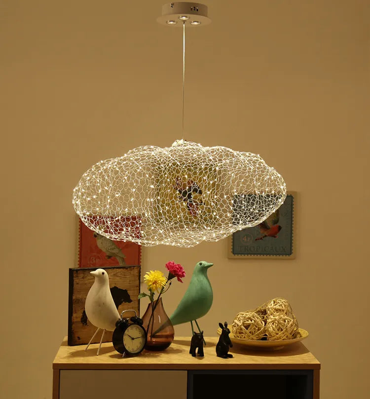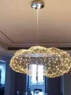 The Modern Energy-saving Cloud Pendant Light With Wire Mesh combines industrial style with stunning illumination. The cloud-shaped metal frame and LED light source create a dazzling starry effect. High-quality LED bulbs provide long-lasting, energy-efficient lighting, while the adjustable suspension cord allows for flexible positioning, making it ideal for any space.