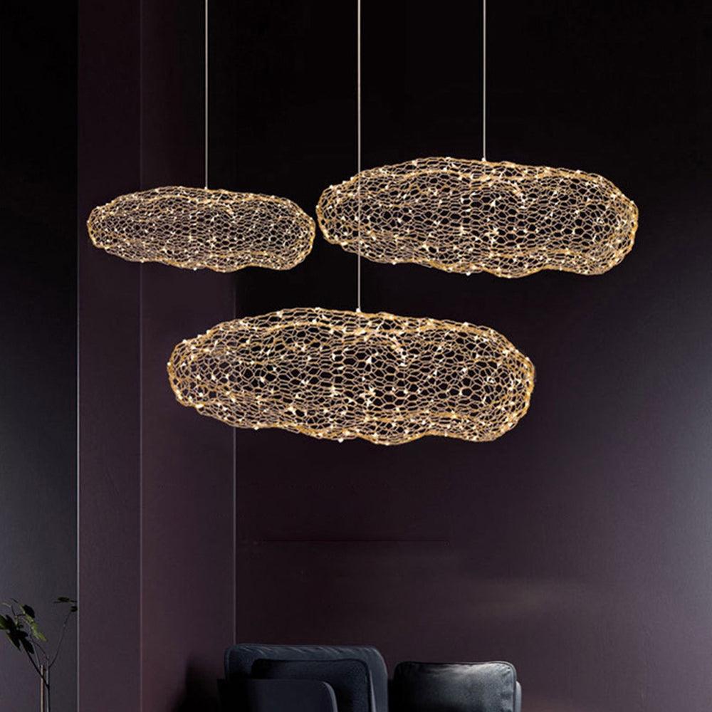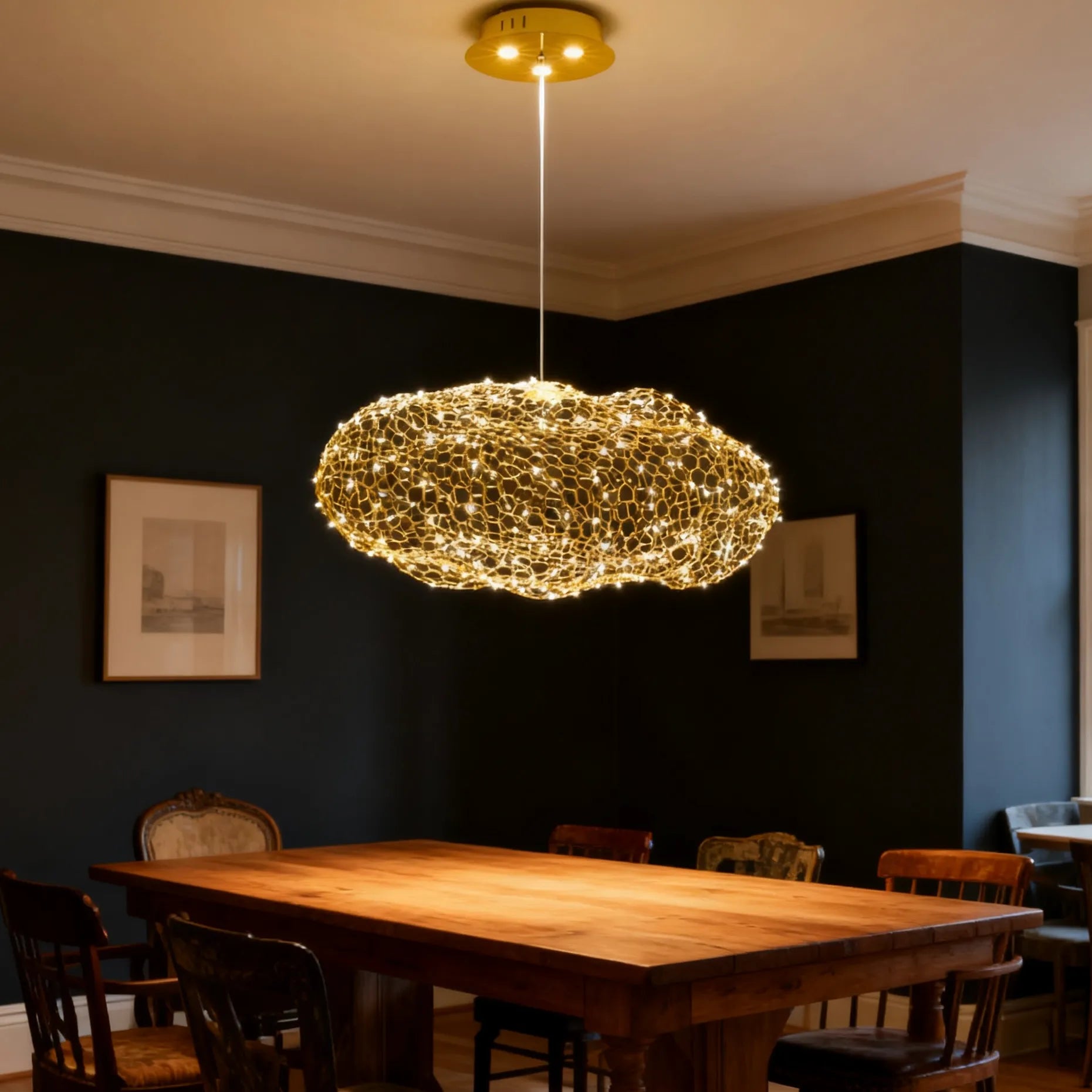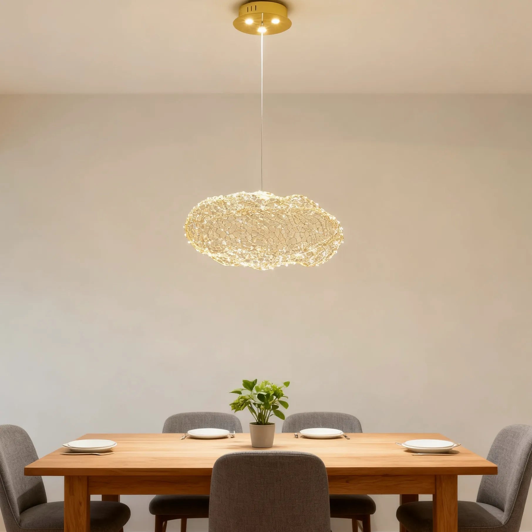 The Modern Energy-saving Cloud Pendant Light With Wire Mesh combines industrial style with stunning illumination. The cloud-shaped metal frame and LED light source create a dazzling starry effect. High-quality LED bulbs provide long-lasting, energy-efficient lighting, while the adjustable suspension cord allows for flexible positioning, making it ideal for any space.