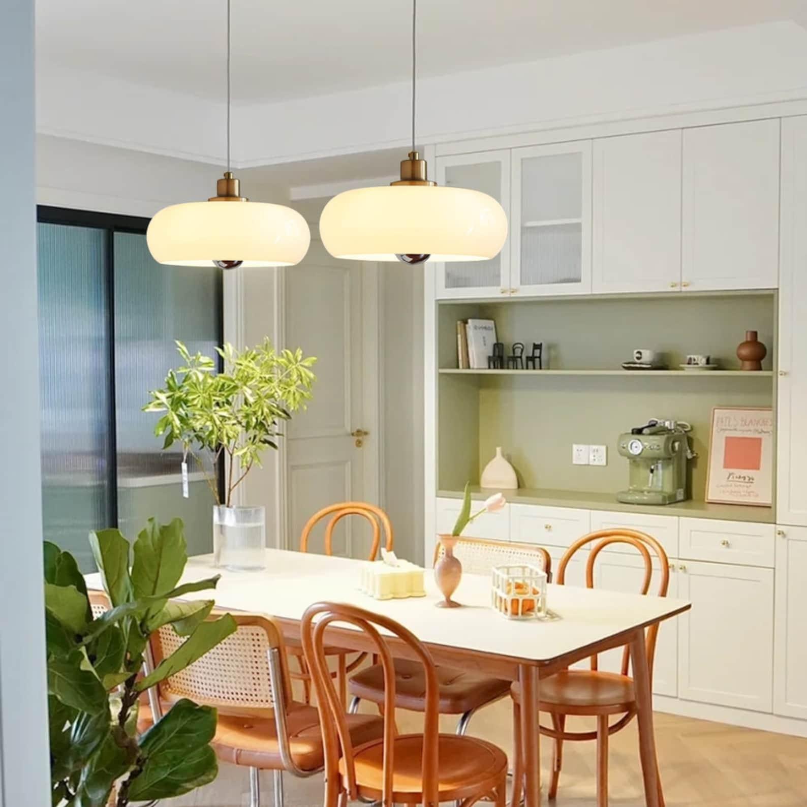 This nordic art glass hanging light transmits evenly and softly, with a unique shape and full of love in the decoration. A must-have for your stylish home! Not only does it add to the feeling of being close to nature, but there is plenty of light to brighten any space.