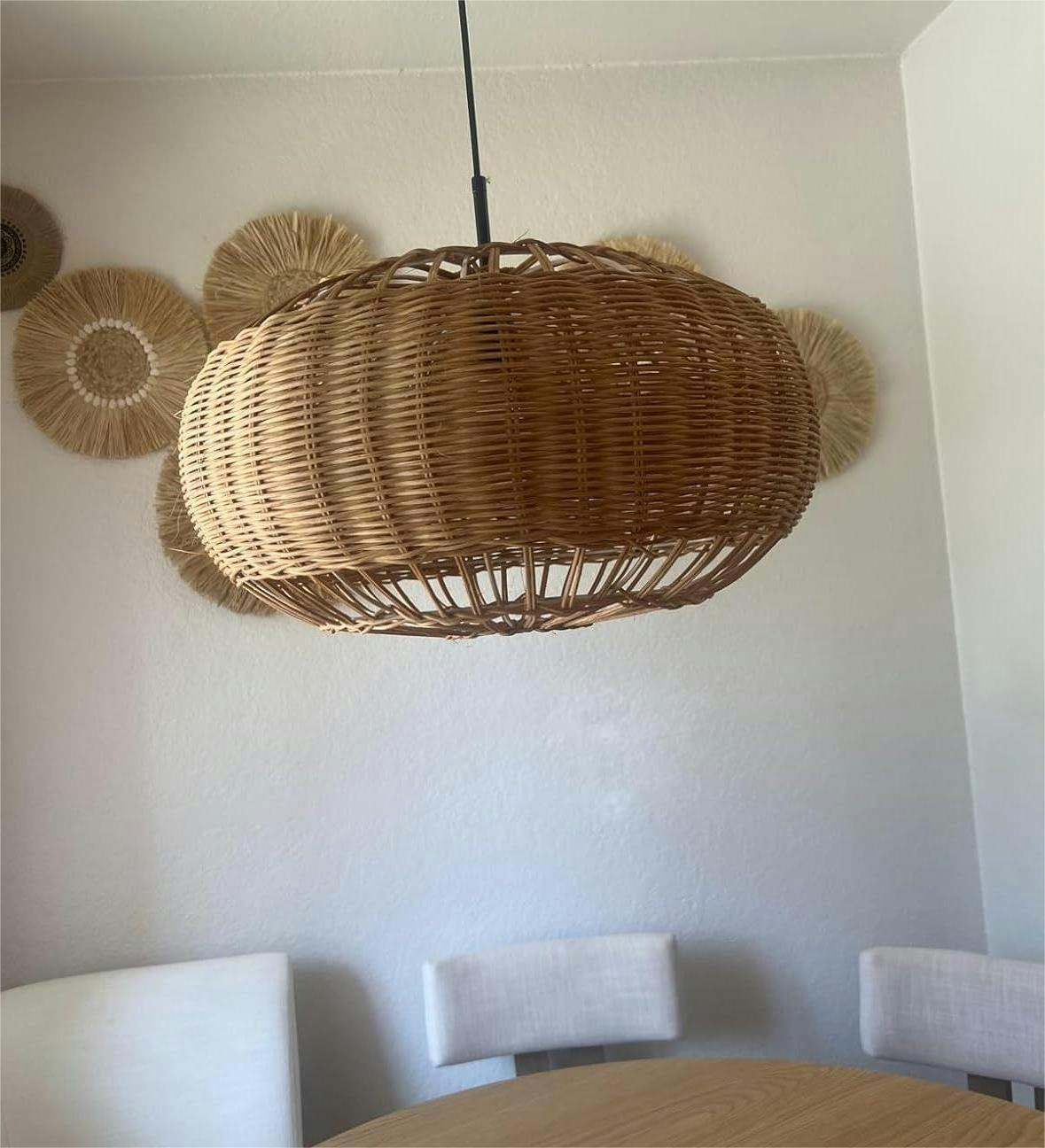 Infuse your home with serene natural charm through the Vintage Handcrafted Oval Rattan Pendant Light. Handwoven from eco-friendly, high-quality rattan, it exudes rustic warmth while ensuring durability and resistance to moisture. The fine weave and soft, diffused light create a tranquil, inviting atmosphere—perfect for your spaces.