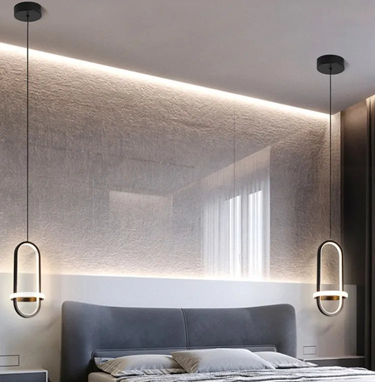 Add a cozy Scandinavian touch to your bedroom with the Nordic Double Ring Bedside Pendant Light. Its sleek double ring design creates a warm, inviting atmosphere, blending minimalist style with modern elegance. The durable metal frame, coated with high-temperature spray paint, is rust, scratch, and corrosion-resistant, ensuring long-lasting beauty and quality.