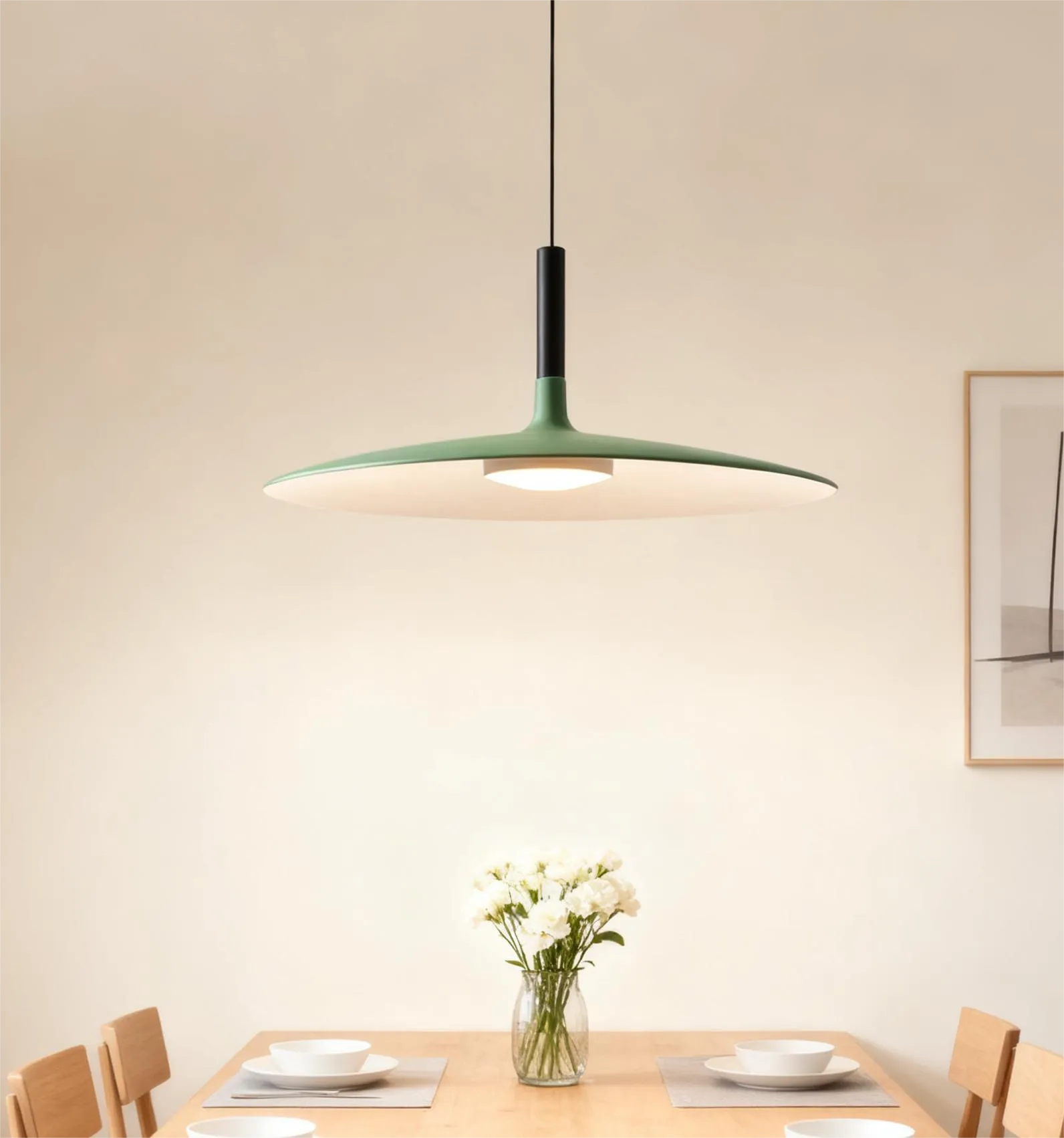 This Modern Disc LED Pendant Light is a perfect blend of modern design and durable functionality, ideal for your dining room.Made from premium metal, it undergoes a multi-layered paint process that ensures resistance to rust and extends its longevity. Its sleek, dsic shape adds a contemporary touch to your space while providing ample lighting.