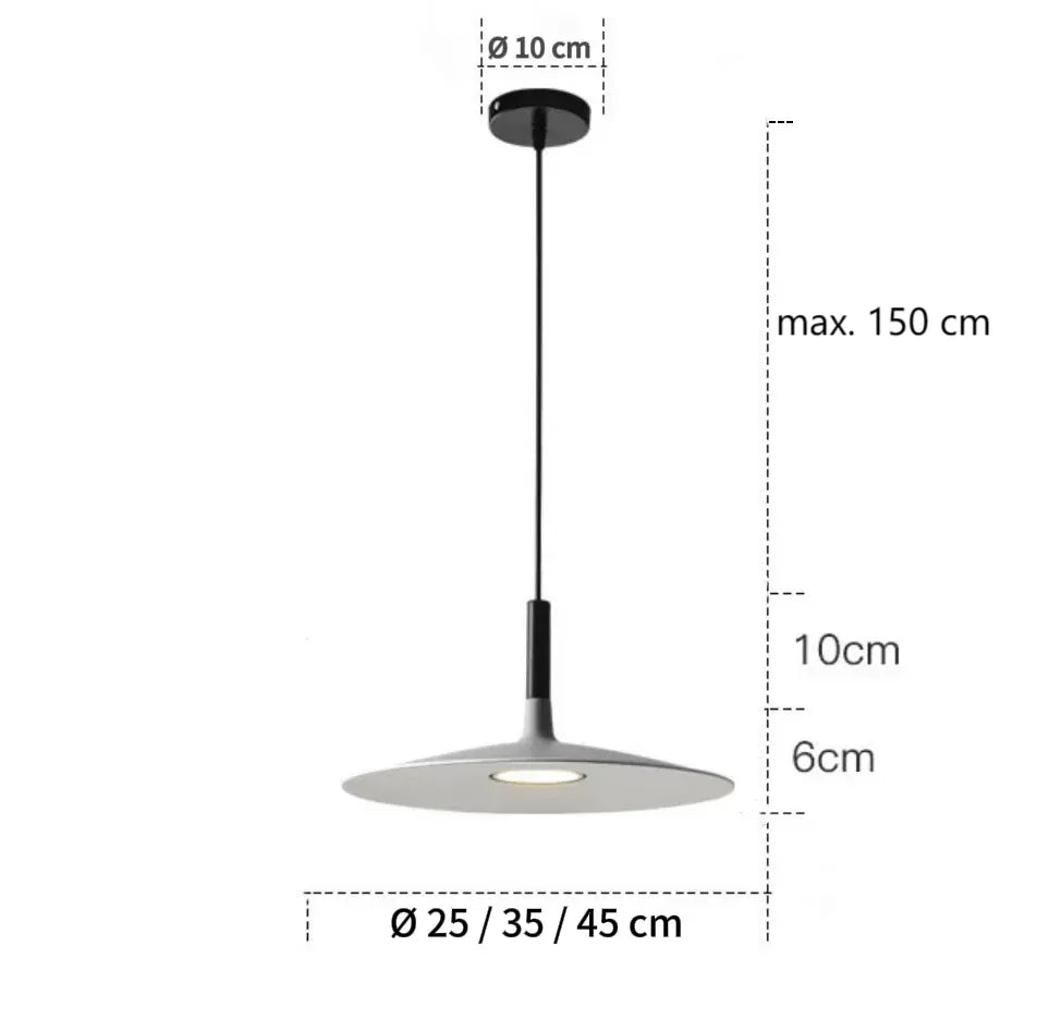 This UFO pendant light offers a modern, stylish lighting solution for your dining room or kitchen island. Available in black, orange, white, light grey, and army green, with diameters of 25cm, 35cm, and 45cm, it features dimmable LED technology for adjustable brightness. Crafted from high-quality metal with multi-layer paint processing, it ensures rust resistance and durability. The anti-glare design provides soft, comfortable illumination for a perfect ambiance. CE certified for safety and reliability.