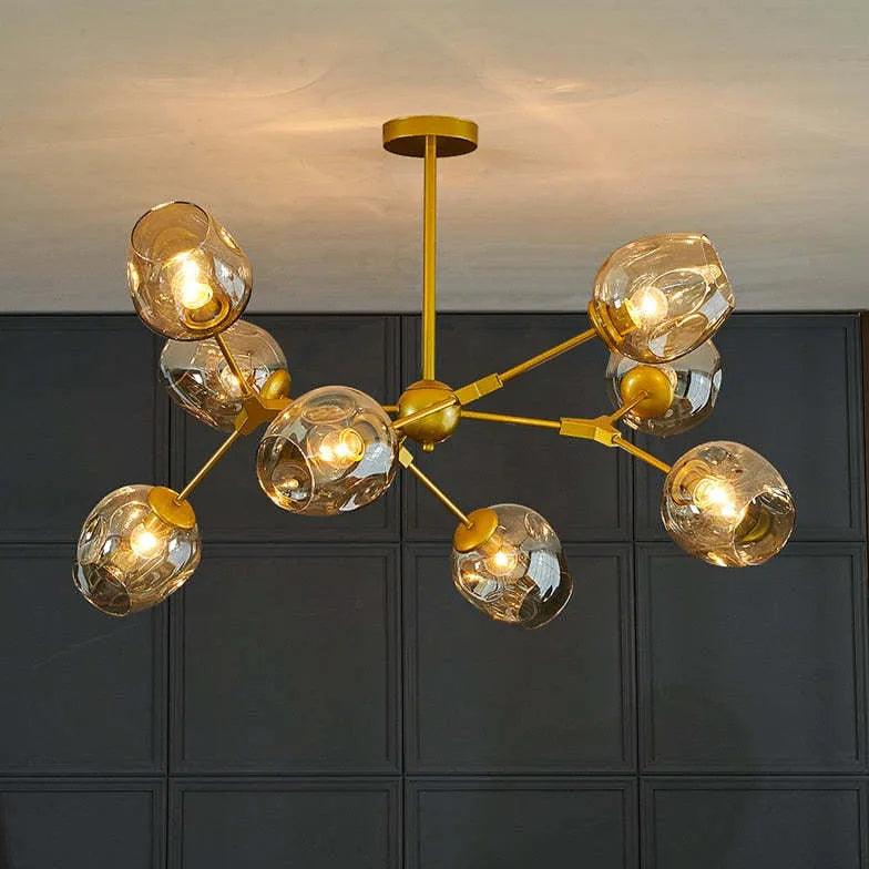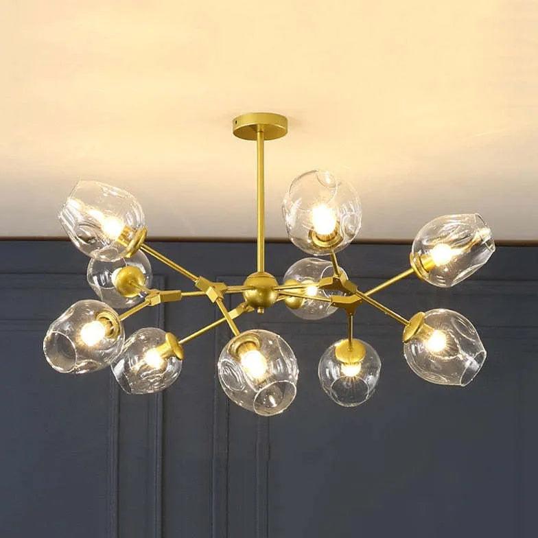 This modern chandelier features a sleek glass globe design, perfect for elevating your living room or bedroom. Made from high-quality metal, glass, and crystal, it offers corrosion resistance and flicker-free lighting. Available in various specifications to suit your space, it blends style with functionality