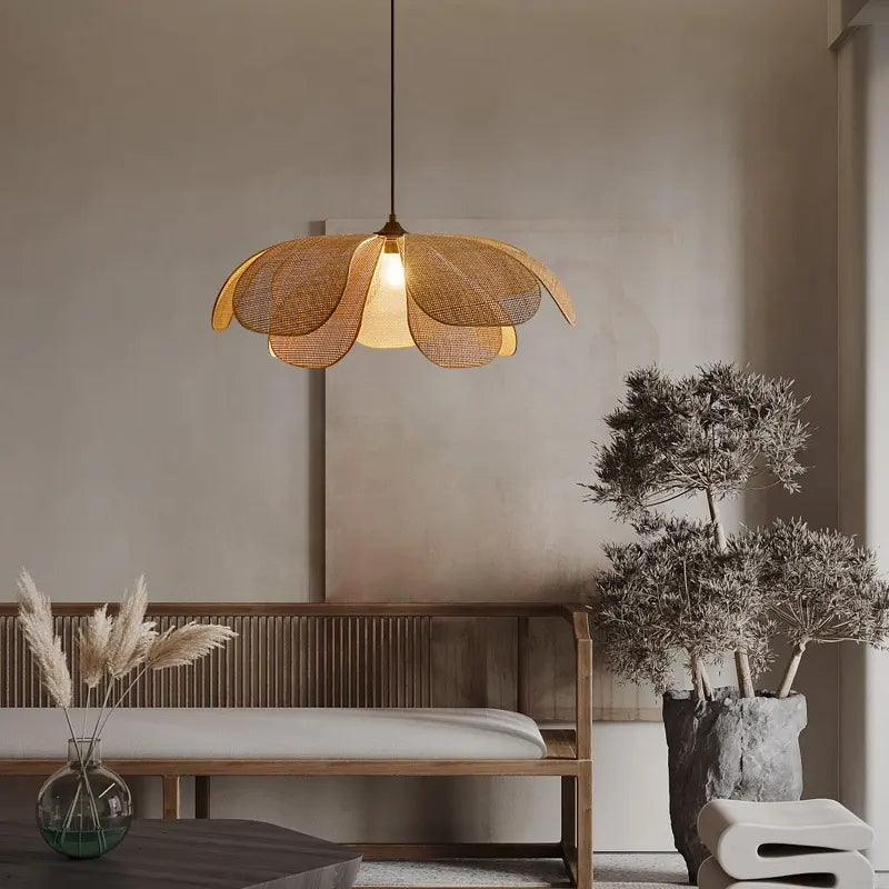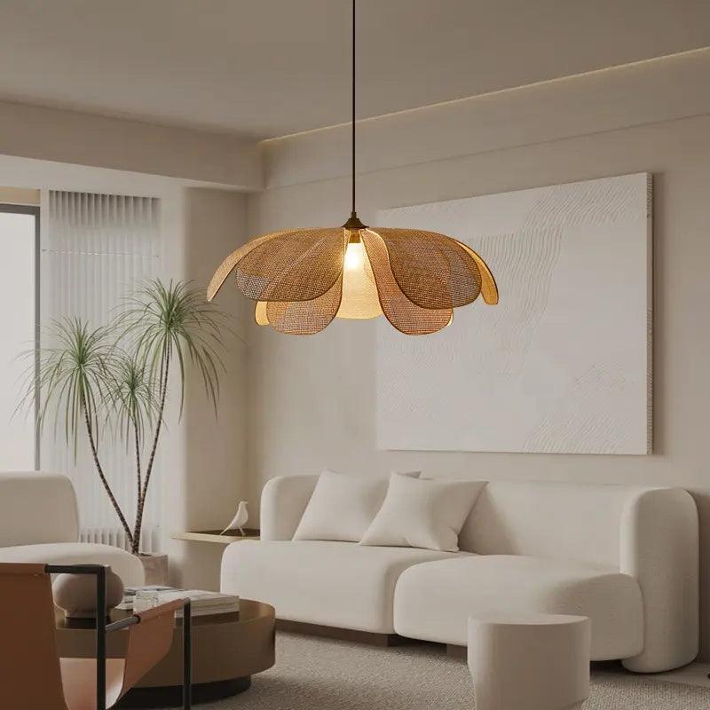 This Rattan Petal Rustic Lamp Shade Pendant Light is the perfect addition to any rustic or boho chic interior. It is crafted from natural rattan petals to create a unique and eye-catching design. The pendant light is suspended from a black metal cord, and it is perfect for adding a touch of rustic charm to any room. This pendant light is suitable for both indoor and outdoor use, and it is easy to install.