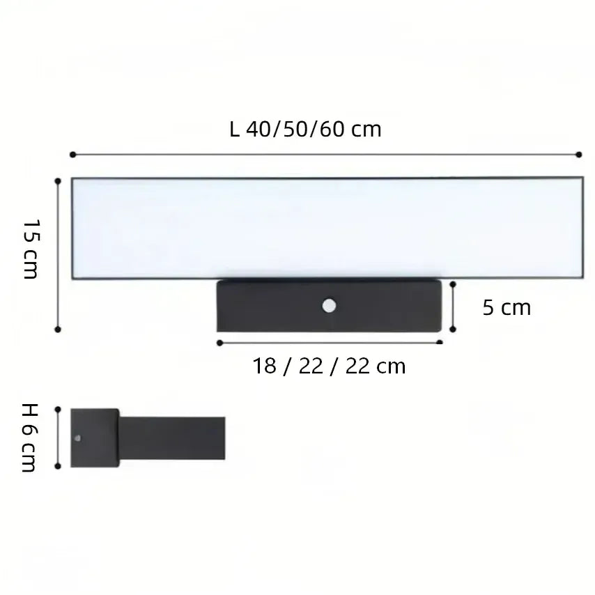 This rectangular outdoor wall light is designed for reliable and efficient exterior lighting around porches, gardens, and patios. Crafted from thick stainless steel, it offers excellent resistance to corrosion and harsh weather conditions. The integrated LED light is energy-efficient and durable, while the built-in motion sensor automatically activates illumination when movement is detected. Rated IP65 waterproof and available in 40cm, 50cm, and 60cm lengths. CE certified for safety.