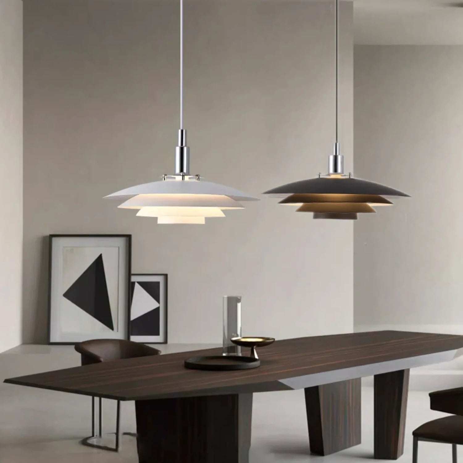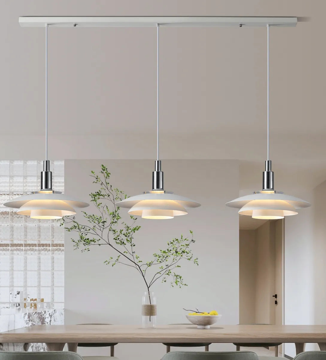 This modern metal pendant light offers a sleek and durable lighting solution for your dining room or kitchen island. Available in black and white, with sizes of 30cm and 38cm diameters, and 1, 2, or 3 light heads, it features long-lasting LED technology that provides low blue light and adjustable brightness. The sturdy metal frame is crafted with multi-layer processes, ensuring consistent colour and durability that resists fading. CE certified for safety and reliability.