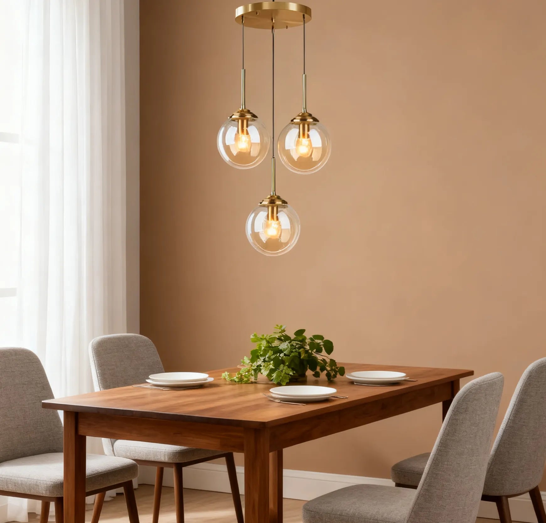 Its nordic design suits various interior styles, making it an ideal choice for everyday dining spaces.Featuring a hand-blown glass shade and sturdy metal construction, this pendant light offers even, eye-friendly lighting that creates a warm and inviting atmosphere. The soft illumination enhances the mood of the room, providing a comfortable environment for meals and gatherings.