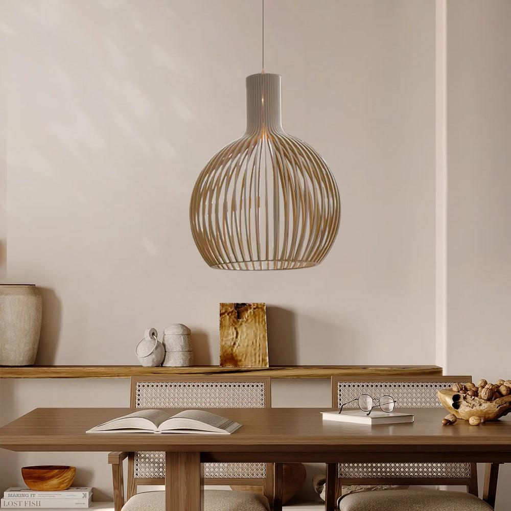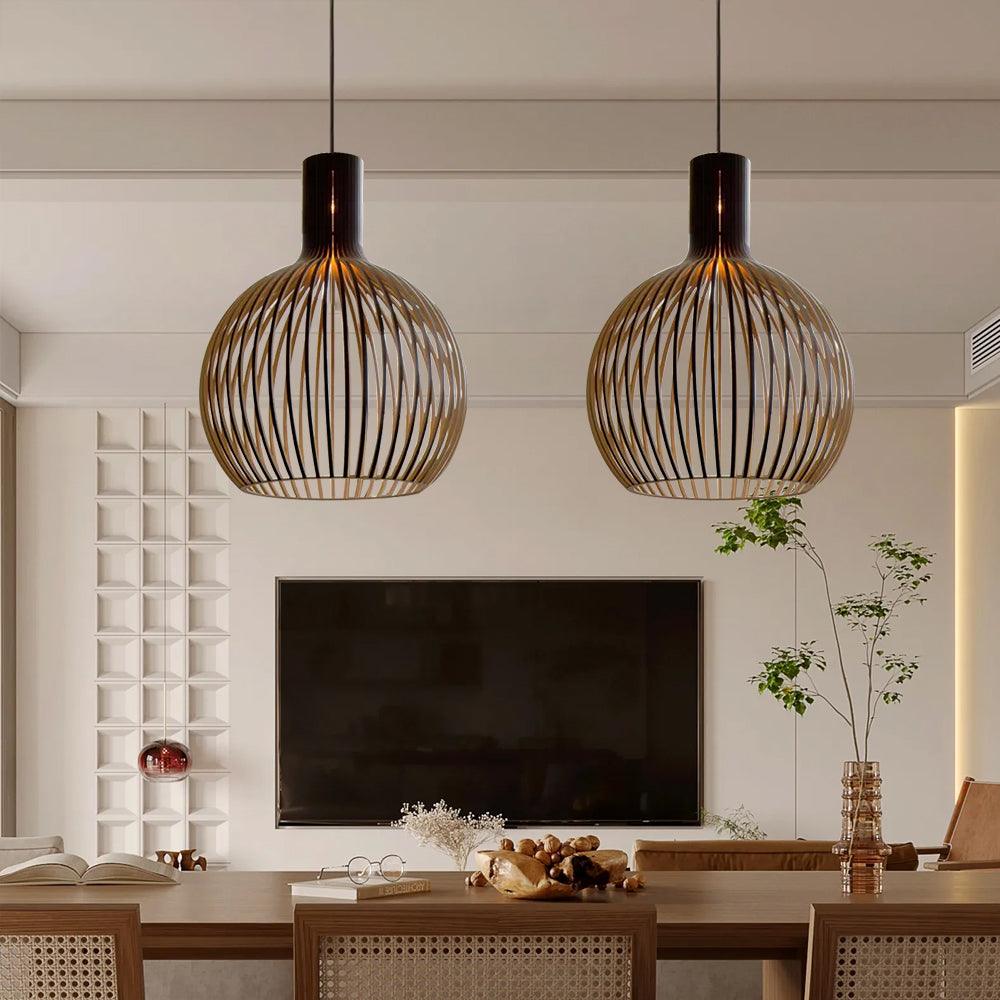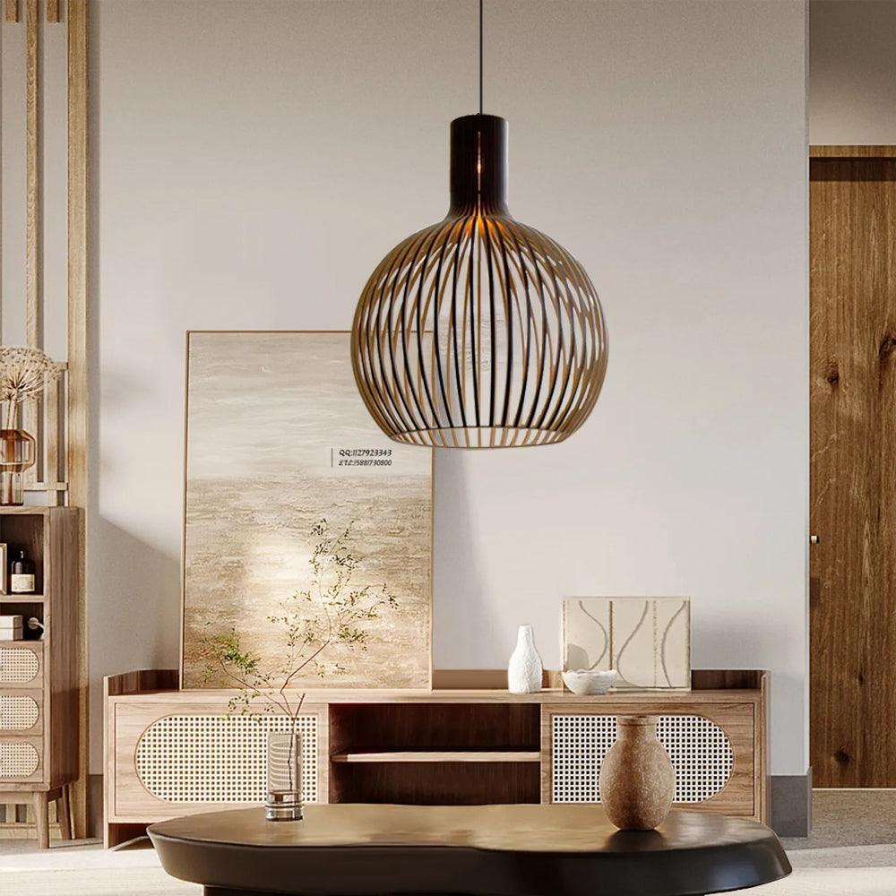 A classic, this pendant is large and airy. A chic and contemporary handmade ceiling light for decoration. Pleasant light and a gentle luminance are provided by the wood. The lamp's design complements both traditional and contemporary designs, and it can be hung over living rooms or dining tables.