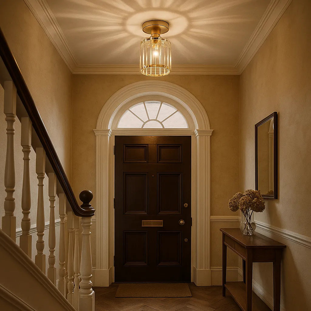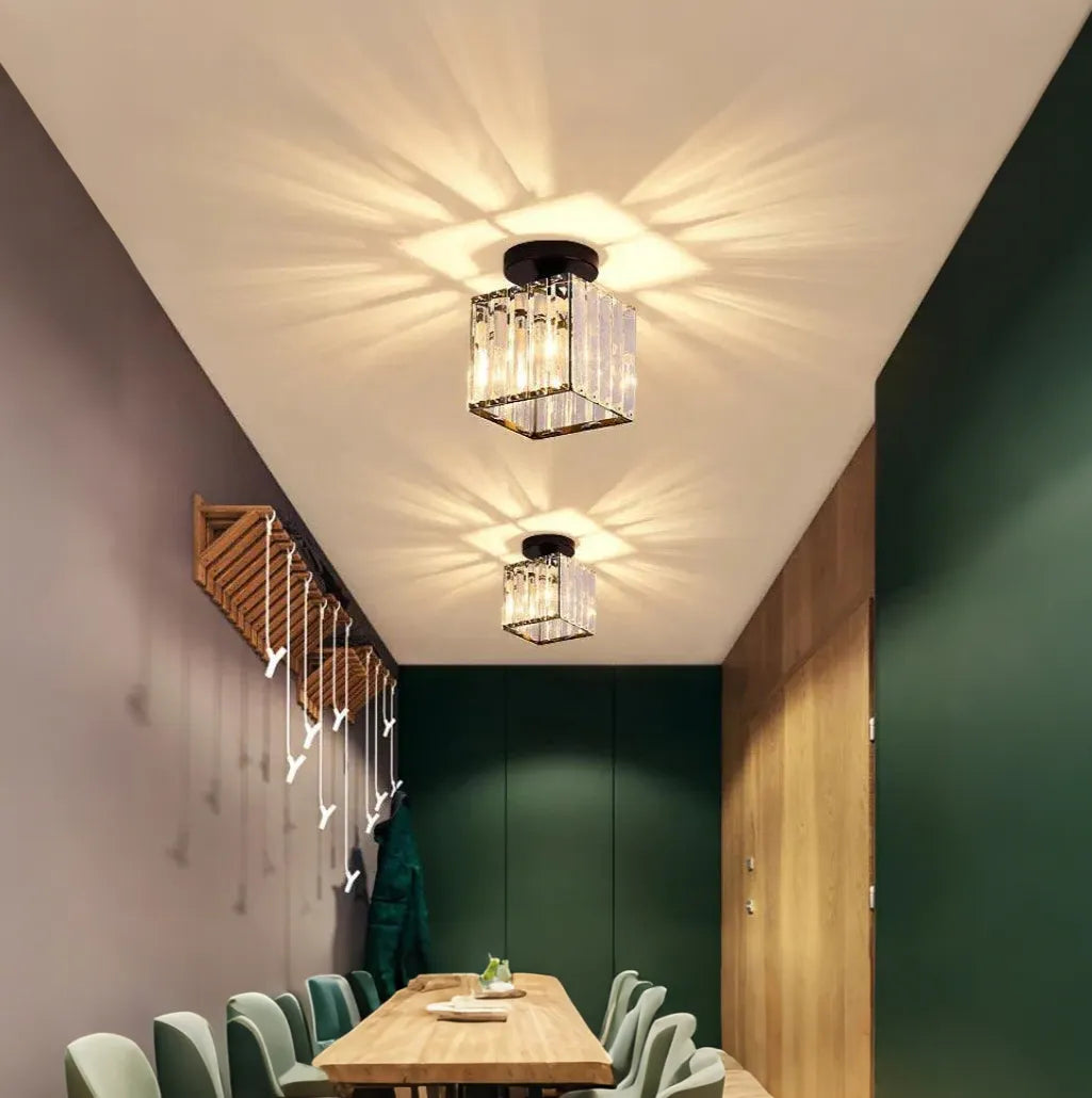Crafted from durable iron and adorned with sparkling crystal, it delivers bright yet soft illumination through its crystal shade, creating a welcoming ambience without glare. Featuring energy-efficient LED bulbs, it reduces power consumption while ensuring long-lasting performance, perfectly combining style, comfort and sustainability.