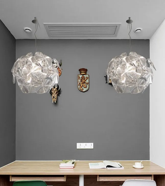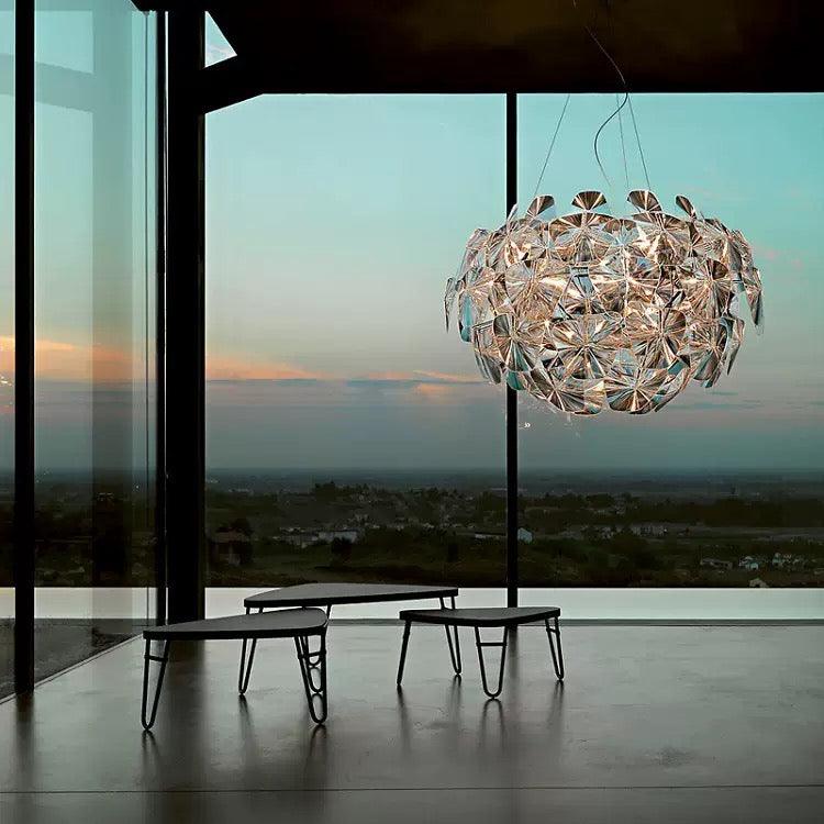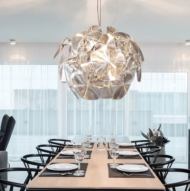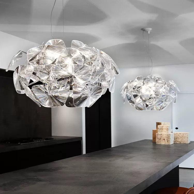 Elevate your room with this Nordic LED sculptural pendant light. Designed with clean lines and a refined minimalist style, it features a premium faux-crystal frame that radiates brilliant light with a subtle laser glow. Every detail reflects elegant craftsmanship, adding a modern artistic touch.