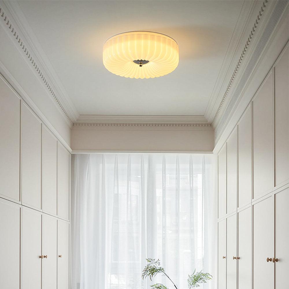 Illuminate your bedroom or study with the Cream Eye Care White Round Ceiling Light. Designed in a sophisticated French style, it combines elegant glass & crystal with durable metal. Available in various sizes, this light offers flicker-free, eye-care functionality, providing a soft, comfortable glow.