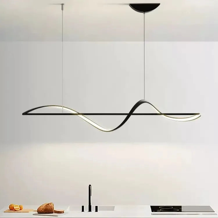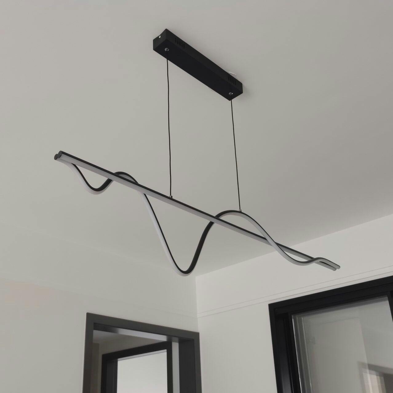 This contemporary wave LED pendant light enhances any dining space with its smooth metal frame and soft silicon diffuser. Easy to install and clean, it features built-in LEDs with three-color adjustable and dimmable functions, allowing you to customize the brightness and color temperature for any occasion. Its warm, even glow makes it perfect for stylish, fuss-free modern living.