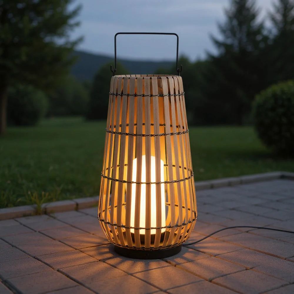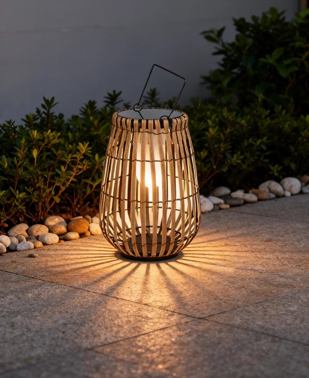 Designed with a bamboo-inspired woven design and crafted from durable galvanized iron paint, it combines natural beauty with long-lasting strength. The efficient solar panel charges during the day and powers warm light at night, creating a cozy, welcoming ambiance. With waterproof and dustproof protection, it’s perfect for gardens and patios all year round.